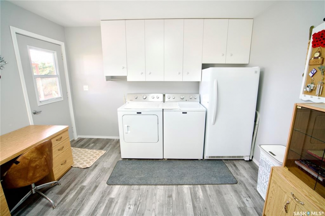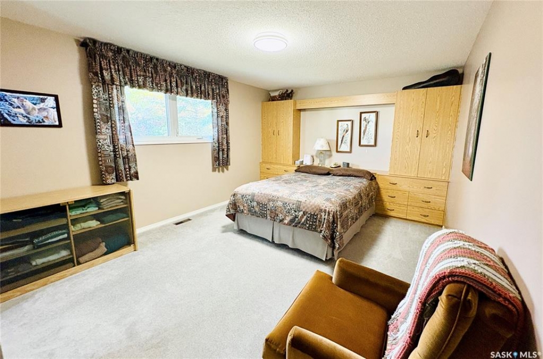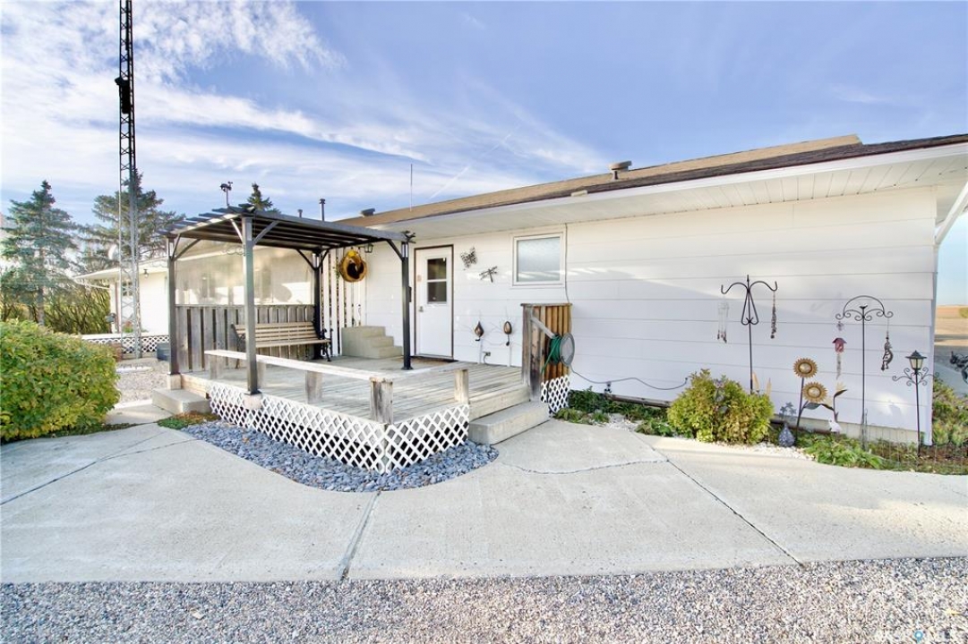 Immaculately maintained 12.59-acre acreage located just west of Wiseton in the RM of Milden (pending subdivision). The spacious 2,416 sq ft bungalow offers 5 bedrooms, 2.5 baths, a heated double attached garage, and a bright, functional layout designed for family living. The home features newer shingles within last 3 years, a high-efficiency Lennox furnace, central A/C, natural-gas fireplace, and Generac backup generator. The yard has been professionally laser-levelled for perfect drainage to the dugout (no spring puddling) and includes a large garden, mature shelterbelt, and open meadow laser levelled for a future Quonset. Outbuildings include a radiant-heated auto shop with lift and paint booth, an in-floor heated woodworking shop with upper storage, and multiple cold-storage buildings, including a quonset and concrete-floor sheds. The well-planned bin yard offers 2 hopper bins and 6 cement-bottom bins (29,200 bu total); hopper bins can be removed for a price adjustment, and the cement bins provide rental-income potential. Serviced with Elrose Pipeline potable water, natural gas, and septic pump-out, this acreage combines comfort, functionality, and true pride of ownership. See attached supplement for additional information and aerial footage of acreage.