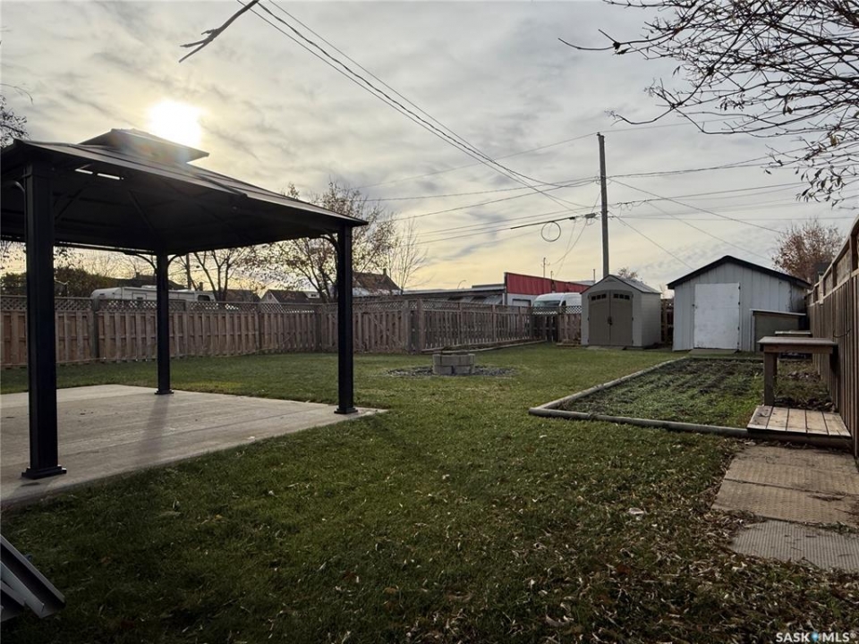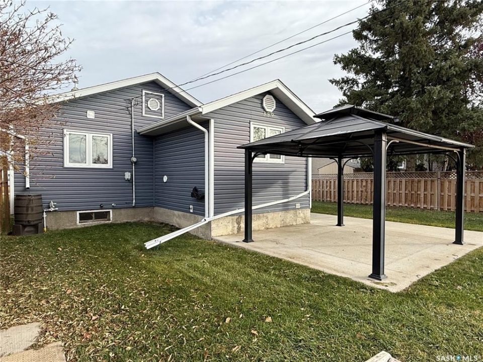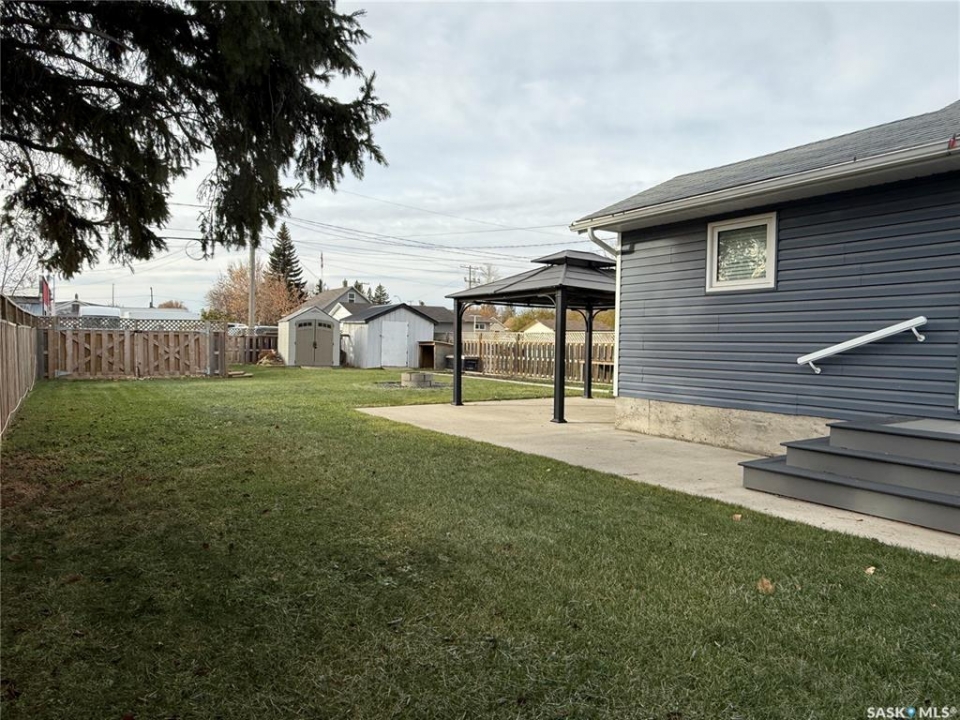 If you've been looking for a home that feels comfortable and full of potential, take a look at this one at 359 4th Ave W in Melville. There are two bedrooms on the main floor, with the option to create a third if you ever decide to move the laundry downstairs — but for now, having main floor laundry and extra storage right where you need it is a nice bonus. The kitchen and bathroom have both been refreshed over the years. So many updates have already been done, taking the work out of your to-do list: windows, shingles, and insulation under the vinyl siding (2016), a new concrete driveway, sidewalk, and patio (2017), a gazebo added to the patio (2018), and a full fence in 2022. The high-efficiency furnace was installed in 2025, and flooring has been refreshed along the way too. The partial basement offers room to make a cozy rec area or hobby space, depending on what suits your lifestyle. Out back, you'll find a garden spot, two sheds for storage, and handy pull-through gates allow for RV storage within the fenced yard. Parking is easy — out front or off the alley, whatever works best for you. Built in 1930 with additions in 1971 and 1987, this home carries its history well. It's clean, comfortable, and ready for someone new to make it their own. Maybe that someone is you.