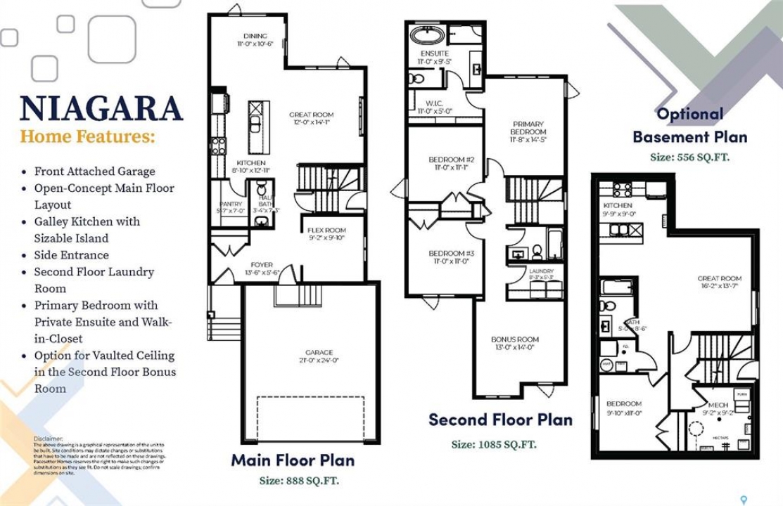 Welcome to 2953 Bellegarde Crescent! Welcome to the Niagara, with 1,973 sq. ft., this family home offers 3 bedrooms, 2.5 bathrooms, and a second-floor bonus room. Enjoy quartz countertops, Moen fixtures, and waterproof laminate flooring. The main floor features a spacious entry, a mudroom with coat hooks and room for a second fridge, an open-concept kitchen with a large pantry and oversized island, and a bright living area with deck access. A side entrance is included for optional basement development. Upstairs, the primary suite has a walk-through closet, ensuite with a soaker tub and walk-in shower, plus two additional bedrooms and a bonus room.