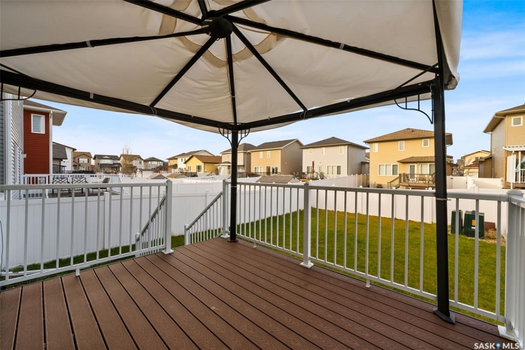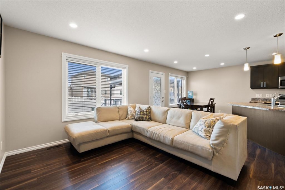 Welcome to 5113 Aerial Crescent. This 3 bedroom 3 bathroom family home in Harbour Landing combines modern comfort and thoughtful design. With attractive curb appeal, stack stone accents, and a covered front entry, the home welcomes you into an open-concept main floor. The kitchen offers plenty of space with soft-close cabinetry an island, and a great view of the living room, which is centred around a cozy gas fireplace. A convenient laundry area and 2-piece bath complete the main level. Upstairs, you'll find three spacious bedrooms and two bathrooms, including the primary suite with a 5-piece ensuite with two sinks, and a huge walk-in closet. The insulated basement is open for development, with a rough-in for a future bathroom and space for a 4th bedroom. Step outside to enjoy a fully finished backyard featuring a 10'x12' composite deck with pergola, PVC fencing, and a lush grass area, ideal for relaxing or hosting friends. Additional highlights include an 18' x 24' attached garage with direct entry, central A/C, and a prime location near walking trails, multiple neighbourhood parks and the Grassland shopping area.