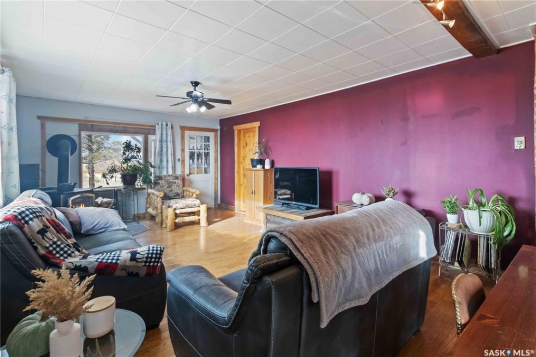 Fall in love with this sweet and welcoming farmhouse, perfectly situated just an hour from the city and only 12 km from local schools (on the bus route!). Enjoy peaceful mornings on the private deck off the main bedroom — the perfect spot for your coffee — complete with a walk-in closet and a spacious ensuite featuring a beautiful travertine stone floor and a classic clawfoot tub. This cozy home offers both character and comfort with a wood-burning stove and an additional electric fireplace in the second living area. Heating is electric and wood, giving you the best of both worlds. Outside, you'll find a large garden area ready for your green thumb, plus a chicken coop and shed for your hobby farm dreams. Conveniently located near the Co-op grocery store in Marcelin and close to Blaine Lake, this acreage offers the ideal blend of rural tranquility and nearby amenities.