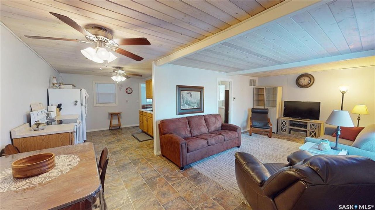 Enjoy Lake Living in this spacious year round property offering over 1100 Sq Ft of comfortable living space across two levels - plus a 220 sq.ft. Sunroom Addition surrounded by a wraparound deck on three sides. Build around 1980, this cabin has been well cared for with updated to Vinyl Siding and Shingles adding to its lasting appeal. Inside, you will find a warm and inviting interior with updated flooring, pine accent walls and ceilings creating a cozy cabin atmosphere. This home offers three good sized bedrooms each with either a walk-in closet or storage area. BONUS of TWO BATHROOMS - one on Main Floor with Tub/shower and a 2nd level large bathroom with build-in shower and large counter. Equipped for year-round use, the property features a gas furnace, central air conditioning and a crawlspace with 6 inch insulated skirting. Appliances are included and most of the furnishings remain (excluding antique pieces) making this an easy move-in opportunity. Outside, you will find four storage sheds, a nicely treed and open back yard with fire pit, plenty of parking and room for a camper/boat all just a very short walking distance to the lake. Whether you are looking for a relaxing family getaway or a full-time lakeside home, this White Bear Lake Resort property offers space, comfort, and charm in a beautiful natural setting. Call realtor for details or check out the immersive 3D Matterport Tour on this listing.