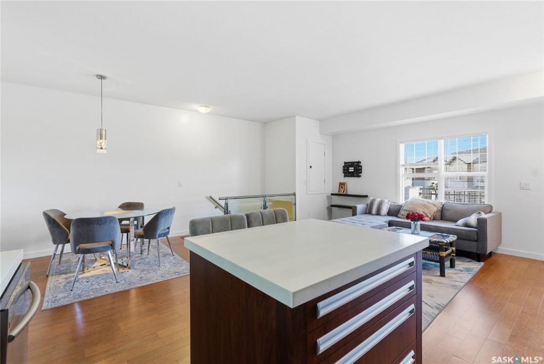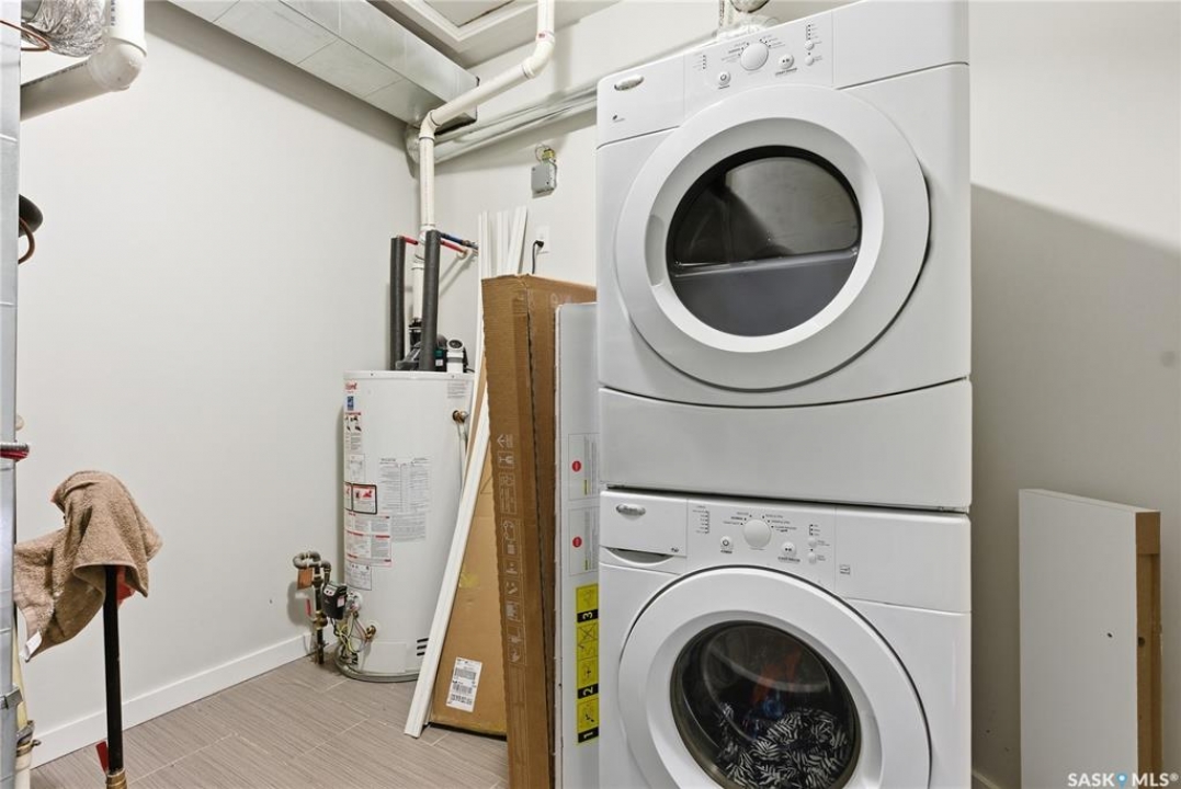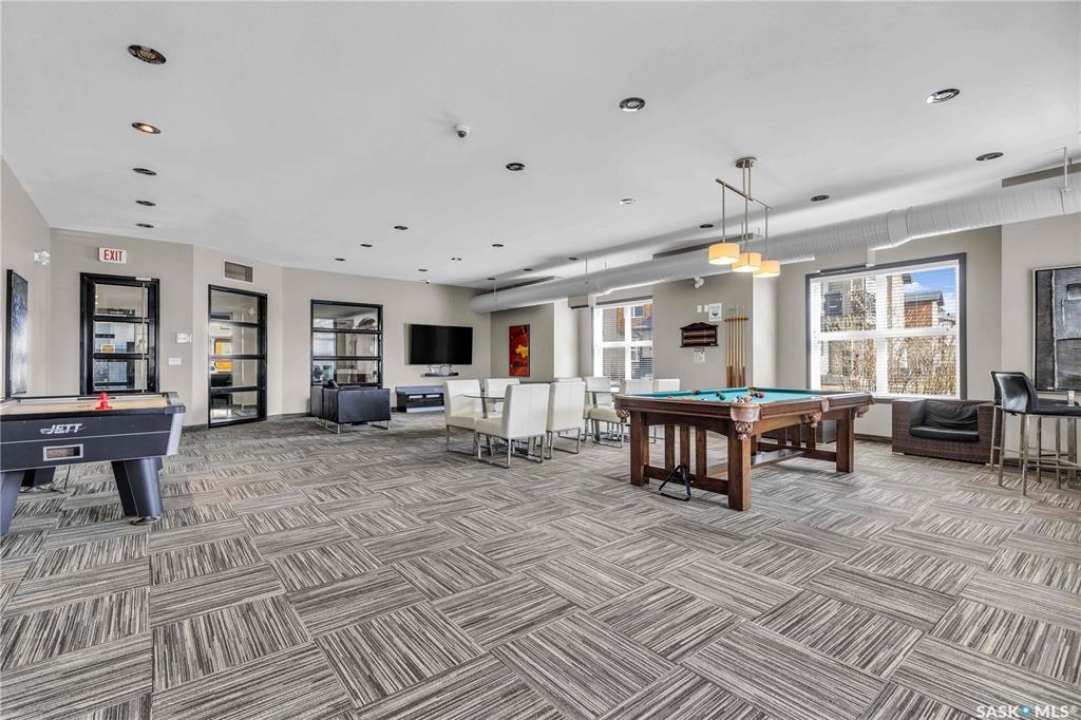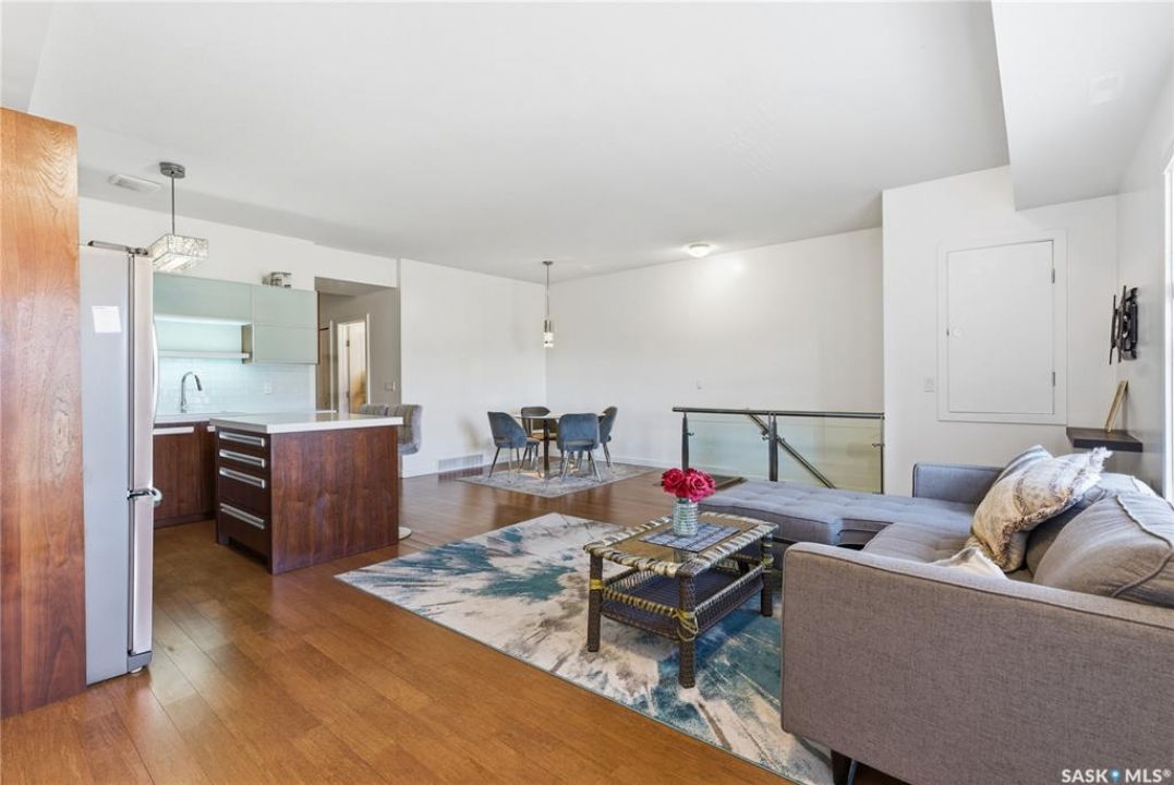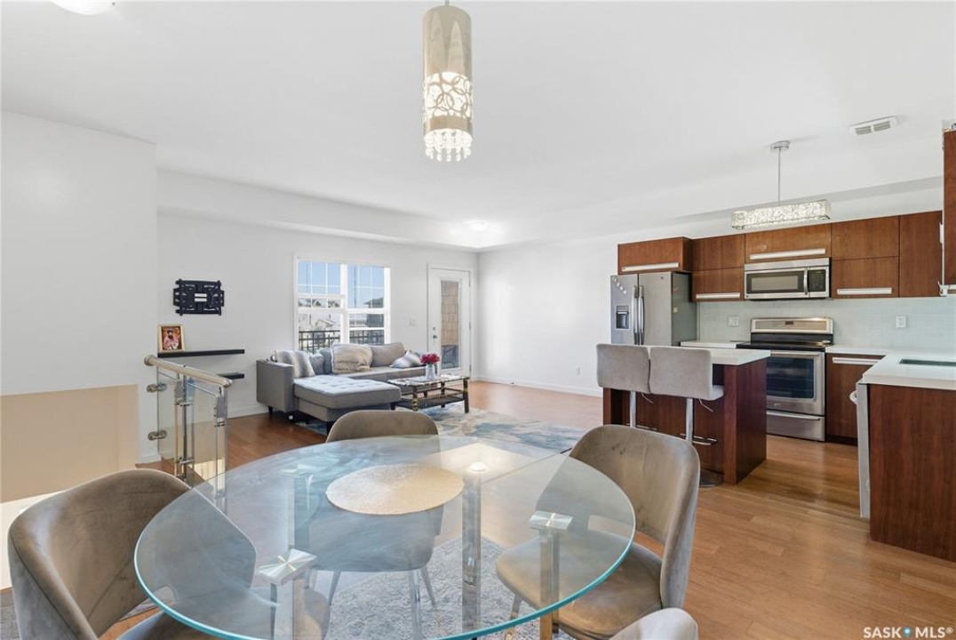Discover the largest unit in the Ginger Lofts complex, featuring the most expansive balcony and two electrified parking stalls. This modern, open-concept second-floor condo offers a bright and functional layout, perfect for comfortable living and entertaining. The inviting living room opens onto a large east-facing balcony, ideal for enjoying your morning coffee or evening relaxation. The stylish kitchen showcases quartz countertops, stainless steel appliances, and a generous dining area — all enhanced by beautiful bamboo hardwood flooring throughout the main living spaces. This unit includes two well-sized bedrooms and a spacious four-piece bathroom featuring a quartz countertop and porcelain tile flooring. The in-suite laundry, conveniently located in the utility room, also provides additional storage space. Residents enjoy access to an impressive clubhouse equipped with an indoor saltwater pool, saltwater hot tub, fully outfitted fitness room suitable for all levels, a lounge with billiards, a furnished patio area, outdoor BBQs, and more. With low condo fees, this property presents an excellent opportunity for first-time buyers, students, or investors alike. Ideally situated close to all amenities in Brighton, with quick access to the freeway and the University of Saskatchewan. Call today to schedule your private viewing and experience all that this exceptional property has to offer.