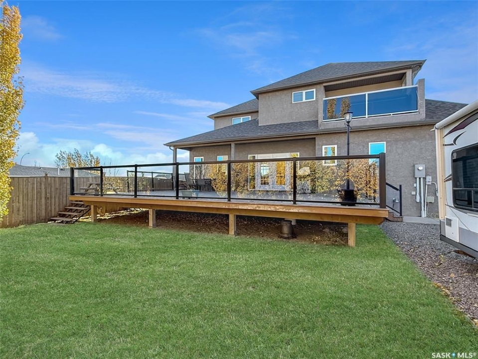 Discover the elegance and craftsmanship of 615 Hodgson Drive, a meticulously maintained by its original owner. This immaculate home features Brazilian cherry hardwood, pot lighting, and expansive windows that bathe each room in natural light. Enter through the grand front porch, featuring the staircase on one side and access to the main floor living room on the other. This space looks over the front yard featuring a gas fireplace seamlessly connecting to the open-concept kitchen and dining area. The kitchen is a chef's delight, equipped with custom cabinetry, SS appliances including a gas stove, pantry, and granite countertops. A spacious sit-up island for six, perfect for entertaining and overlooking the adjacent dining space and oversized deck. The main level also includes a bright office space, a convenient 2pc. ensuite, and a generous back porch. Upstairs, find 3 spacious bedrooms, each with its own walk-in closet. The master suite is impressive, boasting a 14x19 footprint, a substantial walk-in closet, and a lavish 14x10 ensuite featuring a custom walk-in shower, double vanity, and access to a private balcony complete with a hot tub. The lower level is partially complete providing versatile space with two staircases for access. Here, you'll find a sizable family room, den, a fourth bedroom, a bathroom, and utility space equipped with energy-efficient systems including a furnace, on-demand hot water, a water softener, air exchanger and reverse osmosis. Additional highlights include an insulated/heated garage with bonus storage, a fully enclosed yard with LED-lit decking, a natural gas BBQ hookup, and both boat and RV parking accessible via a rear alleyway—an exceptional feature for this desirable subdivision. The property boasts underground irrigation, heated tile flooring in select rooms and central vacuum. Nestled in the coveted Highland neighborhood, this family-friendly home is the perfect blend of luxury and convenience. Schedule your viewing today.