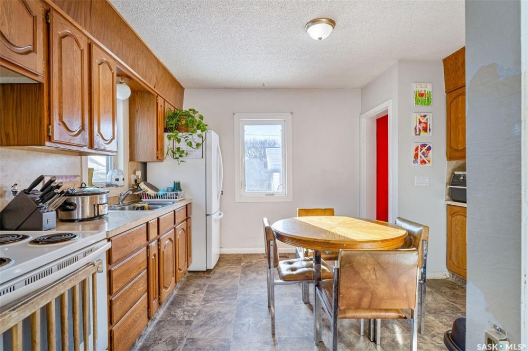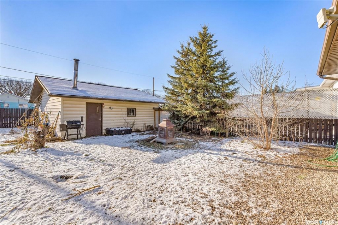 Welcome to 417 McLeod Avenue East, the perfect starter home or investment property situated in a wonderful neighborhood in Melfort. This charming 829 sq. ft. bungalow, built in 1953, offers both comfort and practicality. The fully fenced backyard provides privacy and security, while the 24 x 28 double detached garage is ideal for keeping your vehicles sheltered from the elements. Inside, you're welcomed by a spacious living room featuring beautiful original hardwood flooring, followed by a large kitchen and dining area that's perfect for family meals or entertaining guests. The main floor also includes two generous bedrooms and a newly renovated four-piece bathroom, completing the inviting upper level. The basement expands the living space with two additional large bedrooms, a functional three-piece bathroom, and plenty of room for storage, laundry, and a cozy area for kids to play or relax.Don't miss your chance to view this great home, it's waiting for its new owners today!