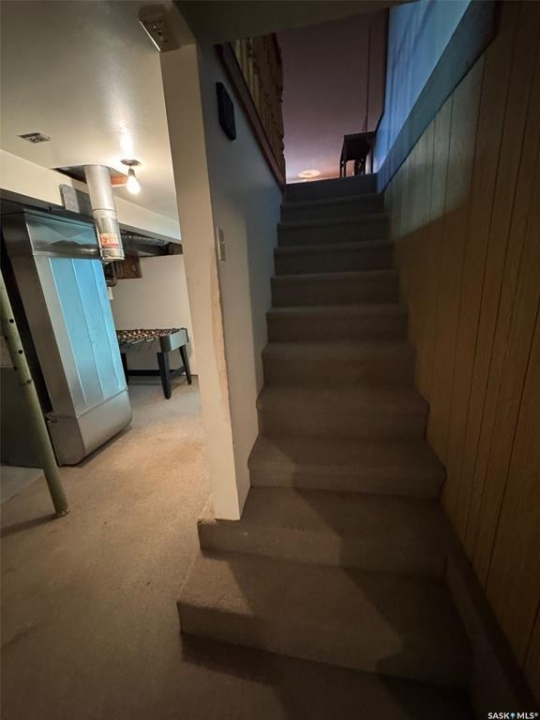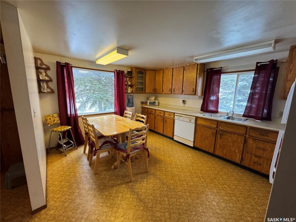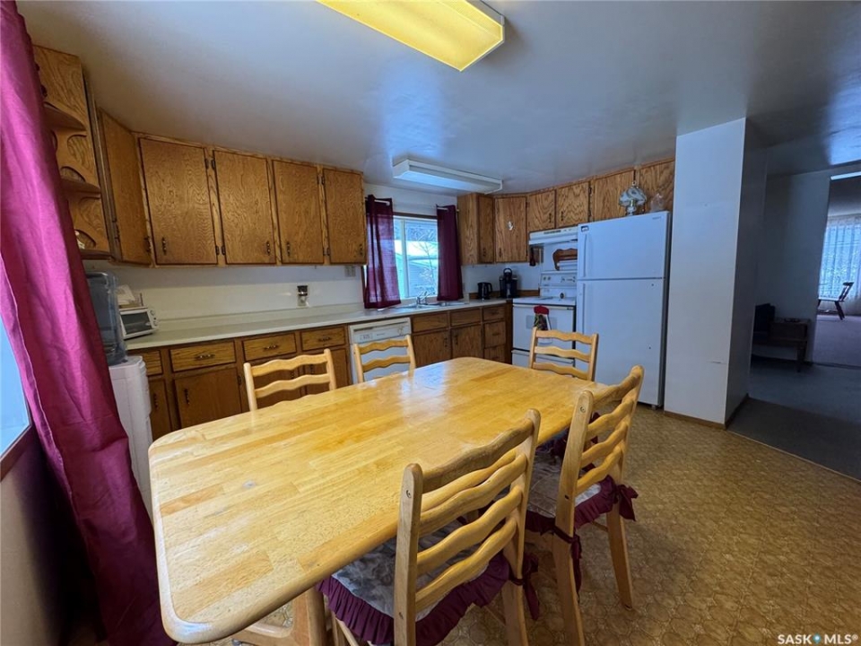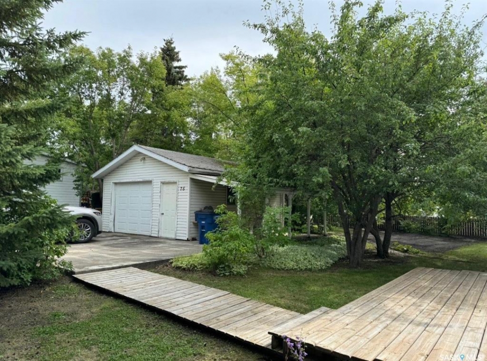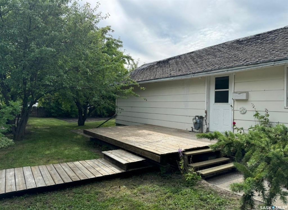 This property is two lots backing a park in Wadena, SK. The home is a 3 bedroom bungalow with a nice eat in kitchen, and large living room overlooking the park. The bedrooms are good size and main floor is rounded out by a porch and laundry/4-piece bathroom. The yard has a deck 1-car garage with a covered patio area, and a large back yard overlooking the park. The basement is partially finished with a den, the former laundry area, 2-piece bath, utility area, and two large rooms ready to make what you want.