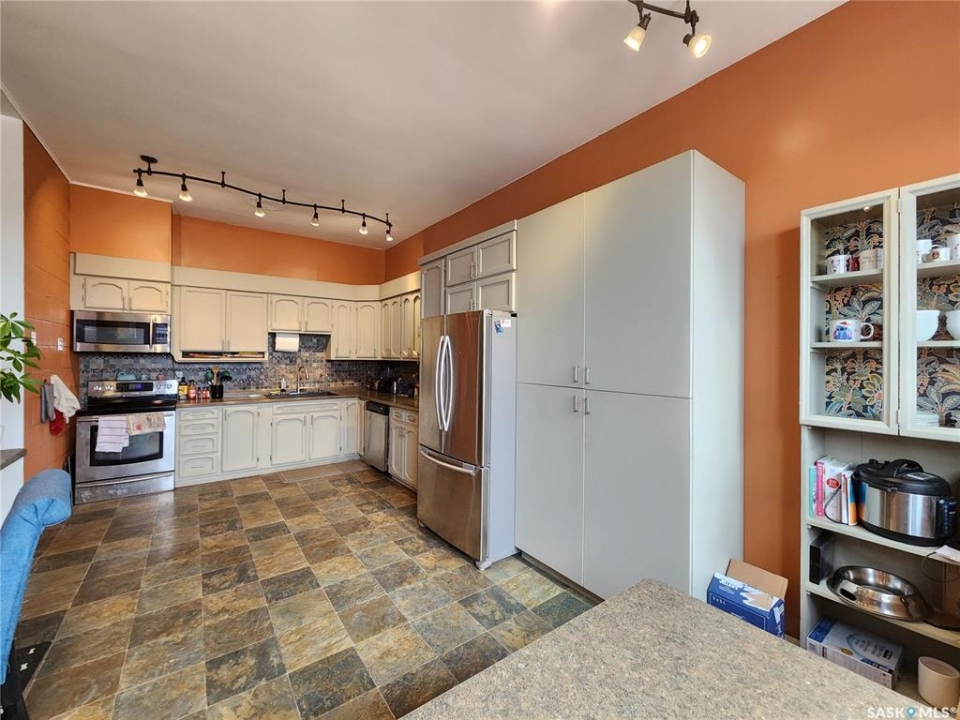Welcome to this unique property situated on 5.5 acres in Kayville SK. This home has been transformed from a school into a BIG square footage home, with so many options. If you are looking for a very cool home for your family or perhaps searching for a commercial space? Look no further! This solid building is built of concrete block with brick and siding exterior, making it cool in the summer. To warm up in the winter, there is a woodstove installed in the living space to add an extra cozy place to curl up with a book. There are 2 very large bathrooms, 3 bedrooms, massive rec room that would make an excellent theater room, or gym for the kids in addition to a ton of storage space, and double attached garage. The yard offers space for whatever your imagination can come up with. Huge garden areas, greenhouse, firepit area and so much room for the kids to run and play! Furnace and water softener have been replaced recently, RO system for drinking water under kitchen sink, flooring in primary bedroom has been updated. Contact for your own tour today!