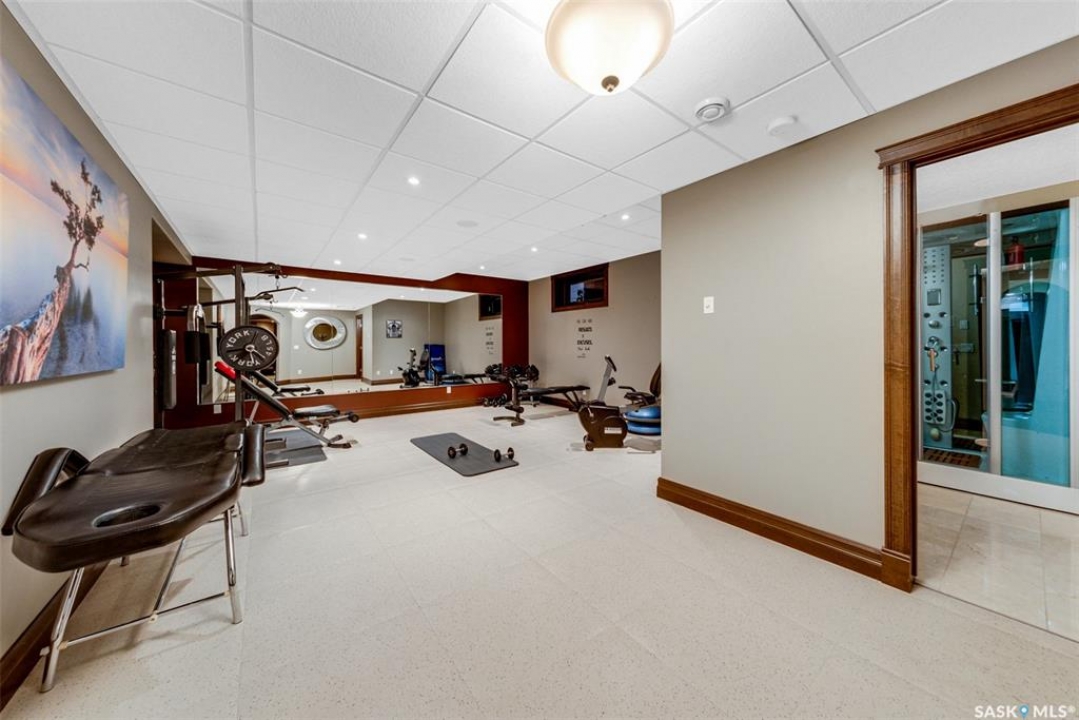 Welcome to one of Saskatoon's most prestigious estates. Located in the hamlet of Rivers Edge, this property is a mere 16 minute drive from the University of Saskatchewan. Perched atop the plateau of Rivers Edge the views from the home are breathtaking with access to the South Saskatchewan River below. Featured here is a 4406 square foot walkout bungalow that features 5 bedrooms, 5 bathrooms, in addition to a gorgeous nanny-suite which is designed to extend ownership longevity. As you walk through the main doors to the home you are greeted by a grand foyer which introduces you to the great room with 12' ceilings. Features that proliferate the home are solid wood cabinetry, casings, baseboards, jambs, doors, and millwork in addition to 6 gas-fireplaces. The walkout is complete with a beautiful wet bar, remarkable theatre room, and custom exercise area with steam shower. Outside you will find a sweeping 830 square foot deck that spans nearly the entire width of the home, complemented by over $250,000 of custom landscaping and road work. This property is truly extraordinary in every sense.