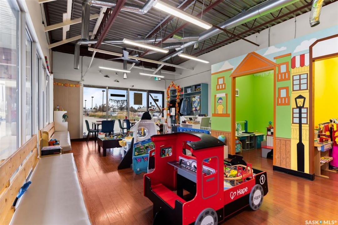 Located in University Park is The Family Corner – Play Café and Kids Town. This business provides a fun atmosphere for children to play and socialize with other children while their parents attend appointments, run errands, or give themselves a break to look after their needs. The Family Corner features an entertaining Kids Town, preschool programs, birthday party packages, camps, and year-round events. This business is ideal for early childhood educators looking to expand their passion for creating a safe, nurturing, and stimulating environment for young children. There is potential to develop before and after school programs, extended day care hours, and specialized early learning programs. This established indoor playground is ideally located in the University Park Shopping Centre off Arcola and University Park Dr. This end unit, corner location offers use of a green space for outdoor activities, plenty of free parking spaces, easy accessibility, and good visibility. Here is your opportunity to own The Family Corner – Play Café and Kids Town and provide a modern childcare solution to busy families while expanding your passion as a business owner providing a safe enriching environment for children to play and learn.