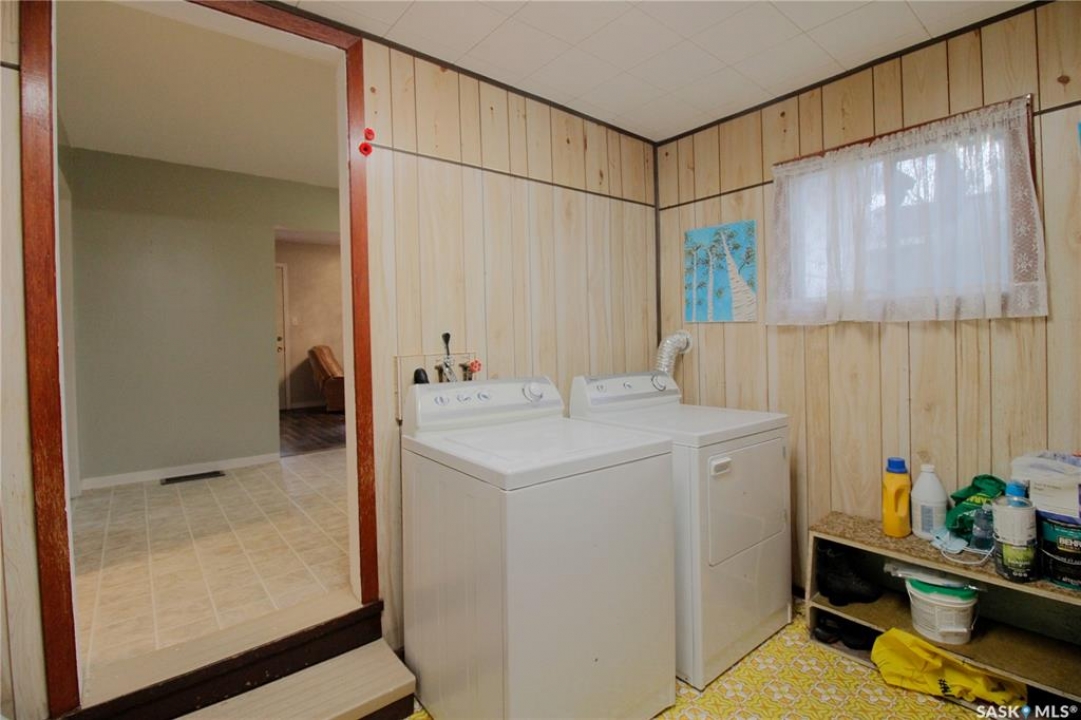 Welcome to 815 Gambetta Street in Whitewood. It is situated on two lots with elm trees through the center. On the one lot you will find your 24x26 insulated garage which was newly built in 2018. It has so much room to build storage units for all your extra belongings. There is also a plugin for your camper located on the back of the garage. The yard makes a great space for a garden area and a firepit. On the other lot is where the cozy 712 sq/ft home which was built in 1962 is situated. It is great for a starter home, or even a retirement home. The porch is where you find the water heater, furnace, washer and dryer. The kitchen offers an ample amount of countertops and cupboard space, and it has room for your dinner table. The bathroom is nicely redone, with a new tub surround and tiles. There are two bedrooms, and a fair sized living room. Almost all the windows have been updated with triple panes helping you save on your energy bills. The electrical panel is updated, the shingles, water heater and furnace are all in great shape. Make this opportunity yours and buy this affordable property with a huge garage, and a double lot today!