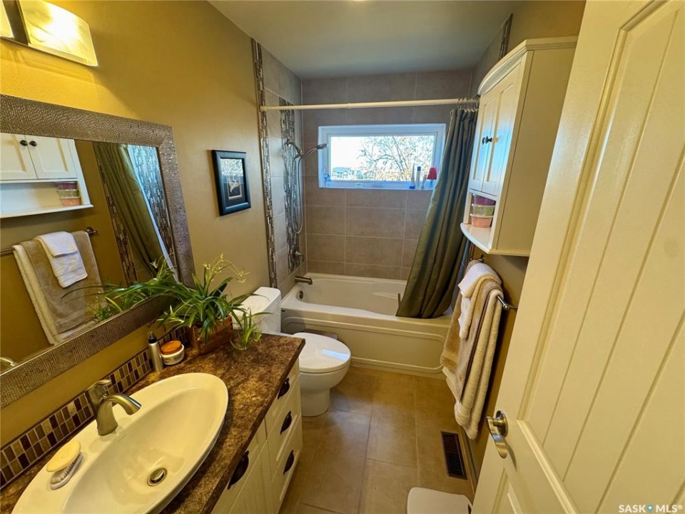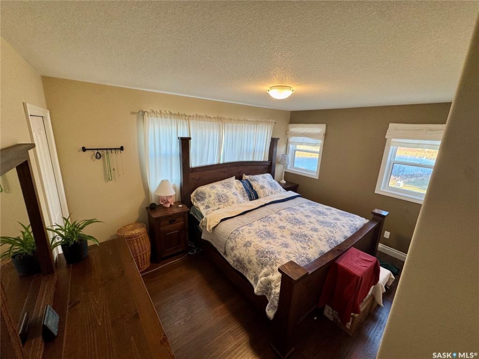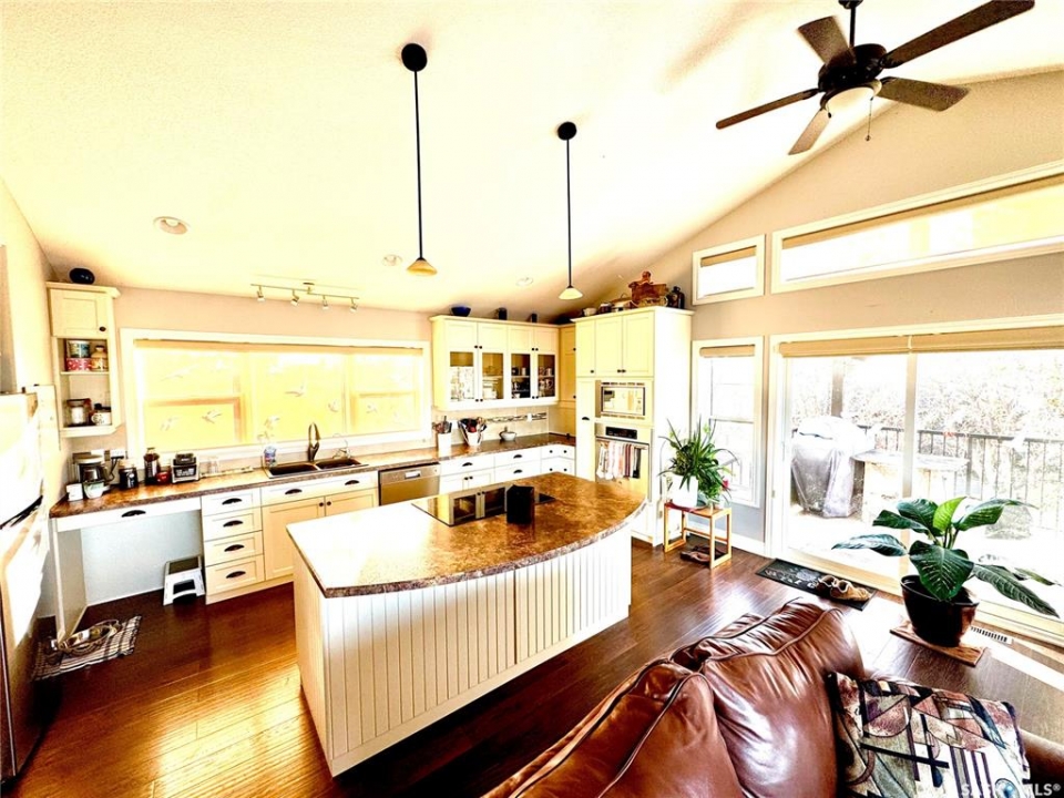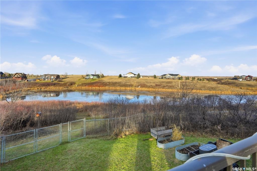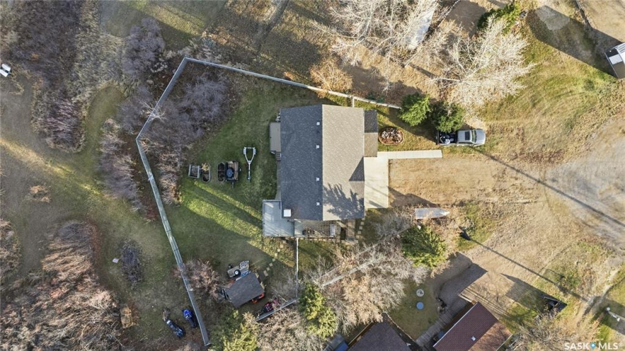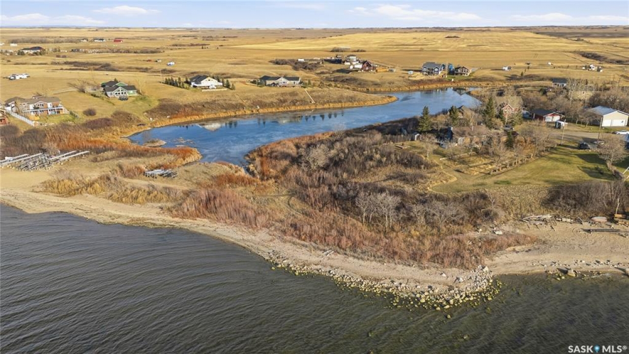 Seize your chance to claim a slice of heaven at Last Mountain Lake! Introducing this remarkable custom-built lakeside residence, offering breathtaking views from nearly every room. With impressive curb appeal, the exterior features low-maintenance composite siding, soffit, and a welcoming veranda. Upon stepping inside, you are welcomed by an open foyer that leads to a 4-piece bathroom complete with a 5-foot walk-in shower, alongside a spacious bedroom that boasts garden doors opening to its own secluded deck. The main level also provides convenient access to a 24' x 26' insulated garage, which includes a heated insulated room utilized for laundry. Additionally, the garage connects to a charming 3-season sunroom, not counted in the total square footage. An elegant open staircase ascends to the upper level, where you'll find a bright and airy layout adorned with vaulted ceilings and stunning views from nearly every corner. The chef's kitchen impresses with abundant rich cabinetry featuring soft-close doors and drawers, ample counter space, an eat-at island with a new ceramic cooktop, and all high-end stainless-steel appliances included. The living and dining areas are perfect for cozy gatherings around the natural gas stone fireplace or stepping out onto the pergola-covered deck equipped with dura decking and glass railing, offering another opportunity to soak in the picturesque surroundings. The upper level also includes a generous primary bedroom with his-and-hers closets, and another bedroom/den currently serving as a laundry/office space. The beautifully landscaped yard is a true gem, featuring a new chain link fence, with many gates for convenient access to water or yard. Noteworthy features include a year-round public water source and a 1500-gallon fiberglass septic tank. This exceptional home is built on piles, and detailed building plans are available for review. Don't miss your chance to live your best life-the lake life.