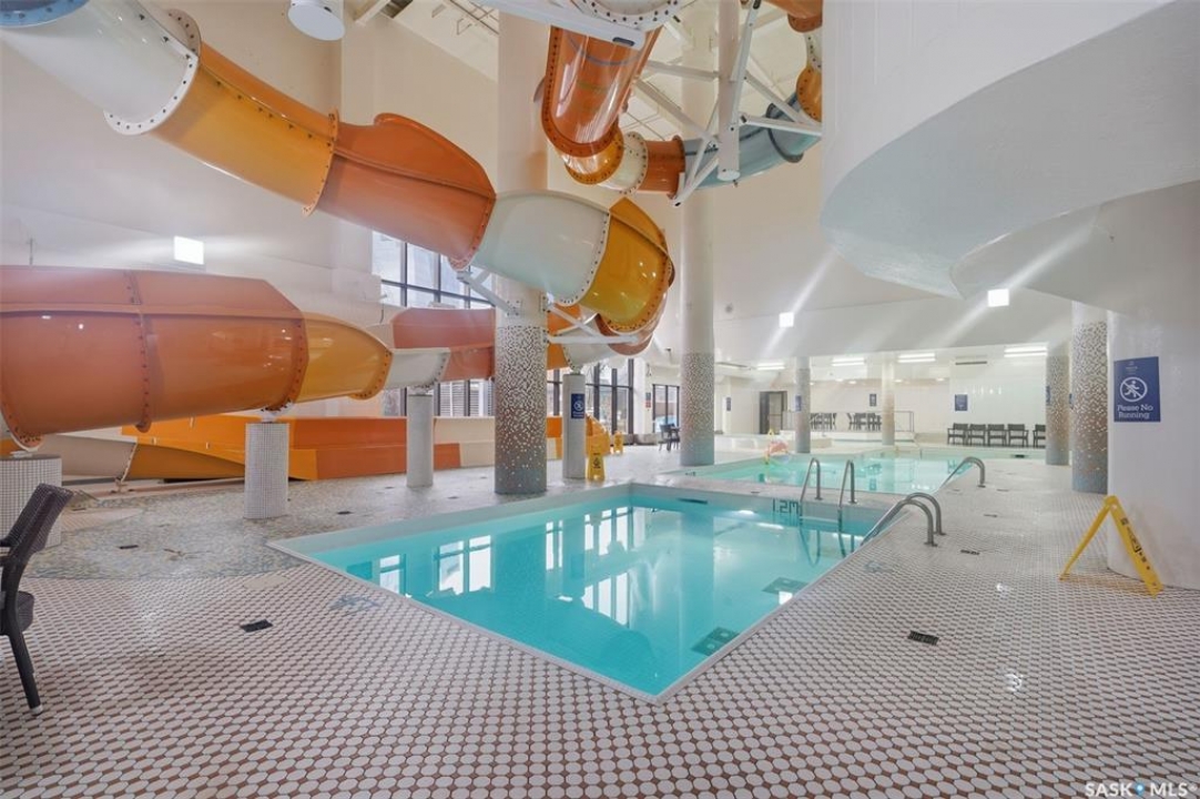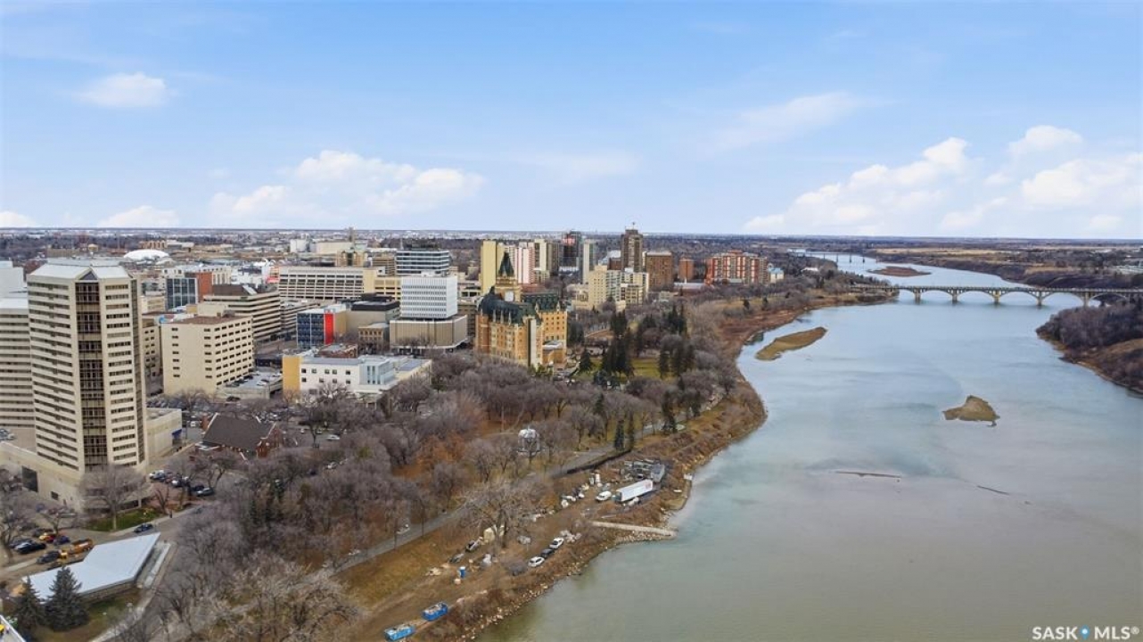 VIEW!! Welcome to this beautifully maintained stylish condo at The Renaissance, offering breathtaking views of the river and city skyline throughout. Condo Fees INCLUDE HEAT, WATER, INTERNET, CABLE AND MORE! This is a lifestyle that can't be beat. Wake up to one of the best views in the city and enjoy every inch of this luxury condo, from its spacious one bedroom with two closets and en suite, to its gorgeous modern kitchen with quartz countertops and stainless steel appliances. Get ready curl up by your captivating fireplace and watch the snow fall across the city. If you can bring yourself to leave your peaceful oasis, downstairs you have access to an indoor pool, hot tub and gym...and just steps out the front door enjoy easy access to the Meewasin Valley Trail, restaurants, shopping and more. This particular unit shows pride of ownership throughout. You won't be disappointed. With underground parking, an extra storage unit and one of the best locations and views Saskatoon has to offer....call your favourite realtor today to book a private showing!