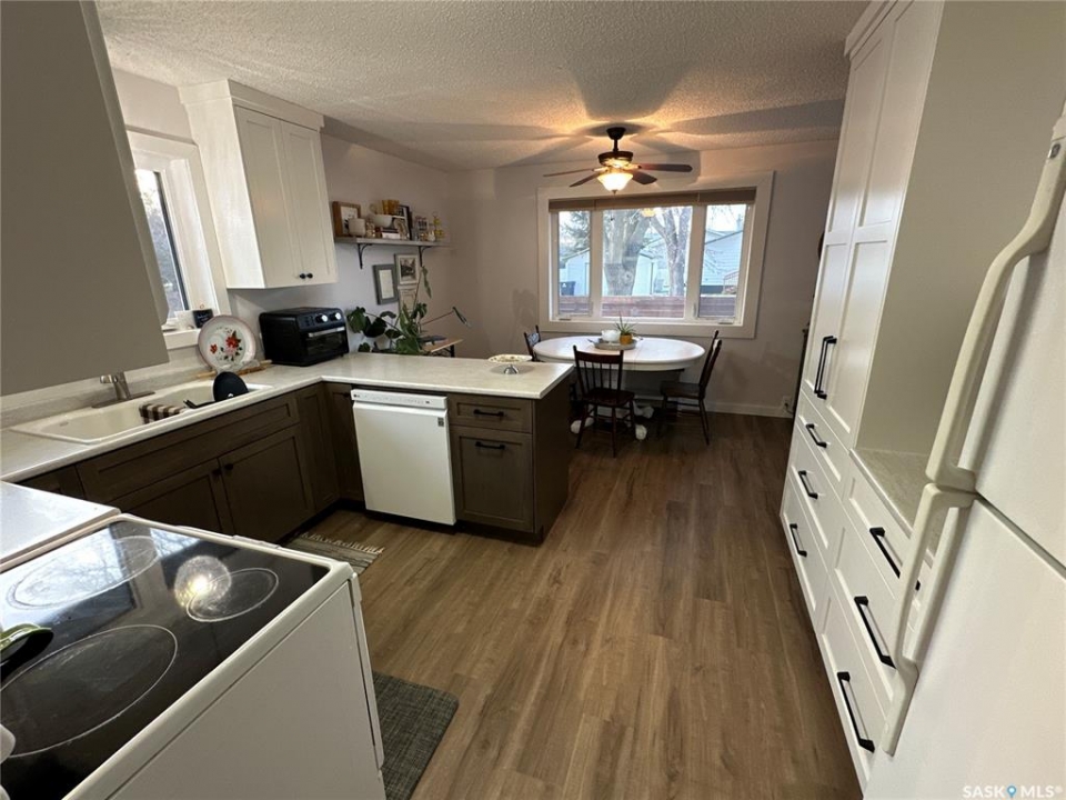 A baker's dream is how you describe this kitchen. Welcome to this 3 bedroom and 1 bath up and 1 bedroom & 1 bath down at 1019 8th Street in Rosthern. The basement also has a spacious family room, a storage room with room for your office, and a cold storage for your garden preserves. This cozy home sits on a 100' wide by 120' deep lot with lots of room to add a new garage. Treed and partially fenced yard with mature trees and shrubs with a two minute walk to downtown or the rink. In summer you are close to the park and the outdoor pool, the ice cream shop and groceries. New kitchen with dishwasher & microwave in 2021, new eavestrough in 2022, fresh exterior paint in 2023. New vinyl plank flooring in the main living area also in 2021! Lots of things to mention and even more to see! This spacious home would also make a great rental property.