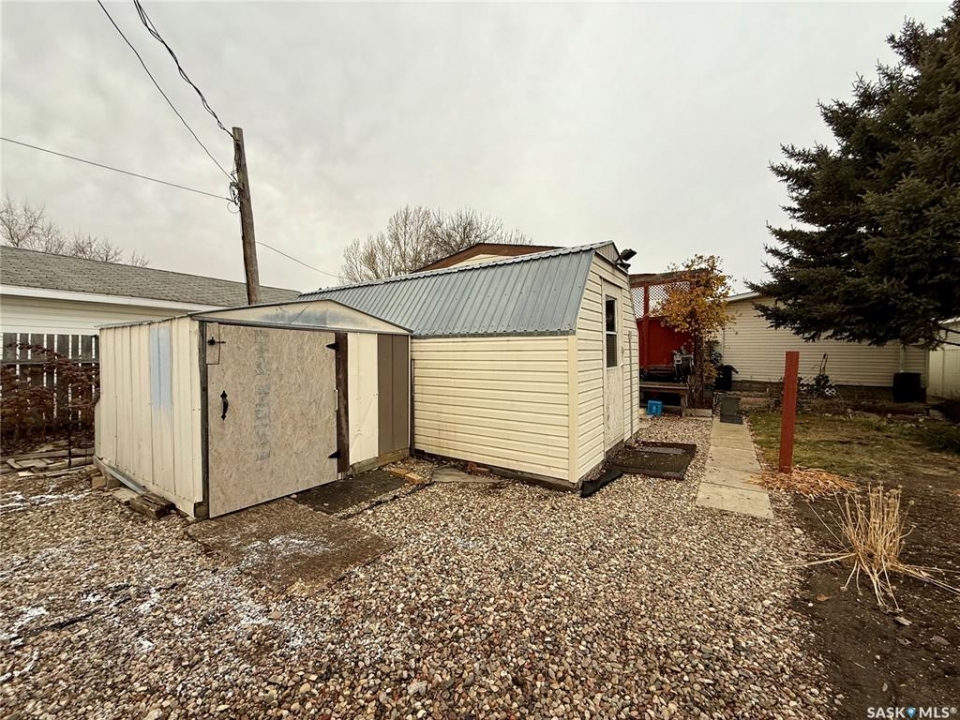 Welcome to #707 2nd Ave West! this 1008 sqft mobile home has been well maintained with 3 bedrooms and 2 bathrooms and dream garage with heated workshop area! Enter into the foyer of the home it is open to the living room. The living room is a great size with two large windows to let in natural light. The kitchen and dining area are off the living room. Down the hall are two bedrooms and a 4-piece bath. The primary bedroom and 3-piece ensuite are at the front of the home. Updates to the home include: siding wiith foam insulation underneath, windows, carpet in the living room was replaced 1 year ago, vinyl plank flooring throughout the rest of the home in November 2025, water heater approximately 3 years old. The home has a commercial furnace and air conditioner. The heated garage is 20' x 38' with separate workshop room and includes some tools. The yard is fully fenced with vinyl fence and includes two sheds. The home has been professionally cleaned and is move in ready! Call to book your showing today!