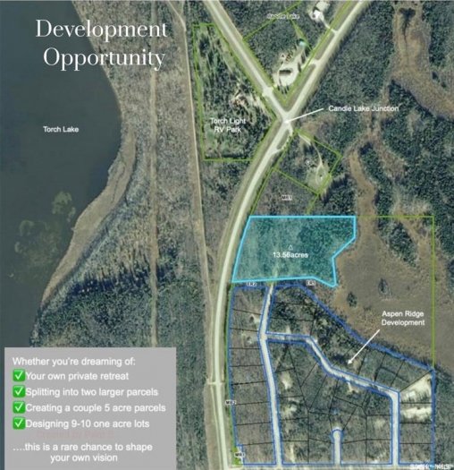 Development Opportunity Across from Candle Junction. This 13.56-acre parcel offers exceptional potential with services adjacent and road access already in place, providing a significant cost savings. It's a rare chance to customize your neighbourhood and bring your vision to life. The property supports multiple development paths: build your own private retreat, divide into two larger parcels, create a couple 5-acre parcels, or develop nine to ten 1-acre lots. The RM of Paddockwood is excellent to work with and actively supports development. This is a unique opportunity in a great location, ready for the right buyer to shape its future.