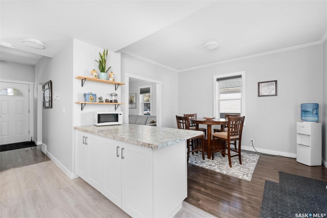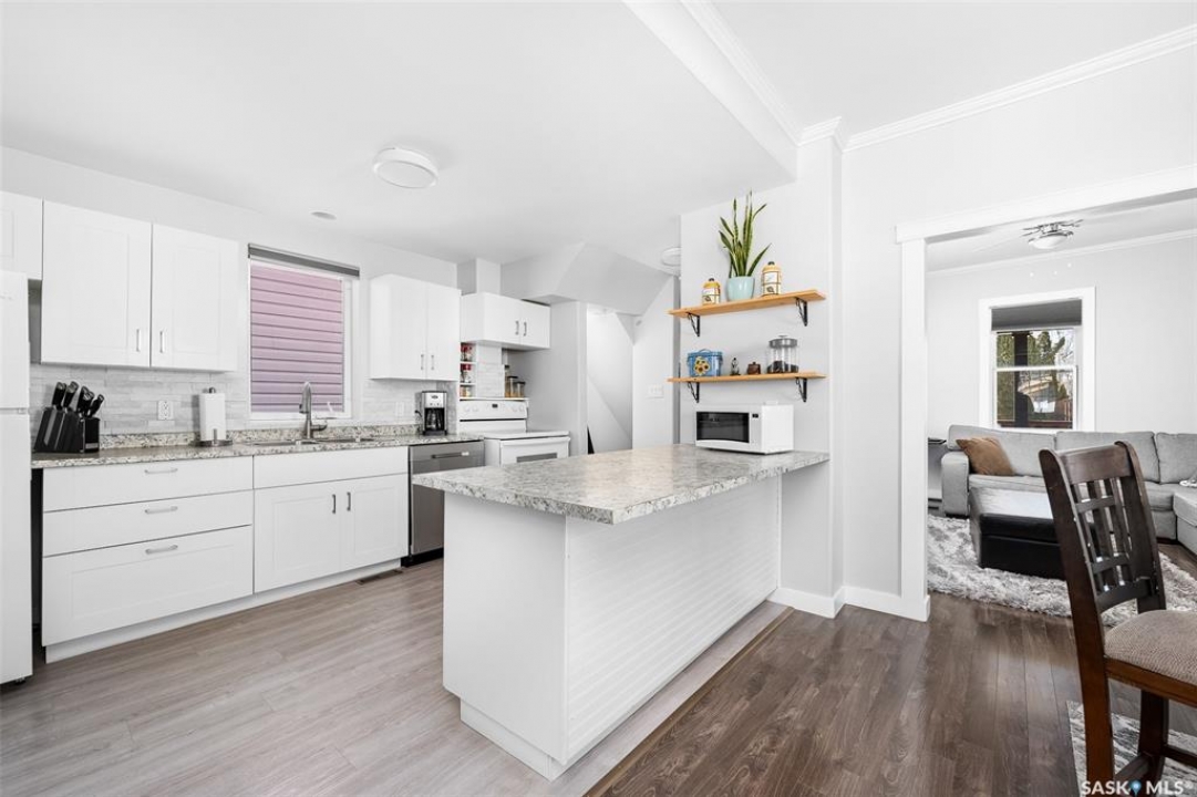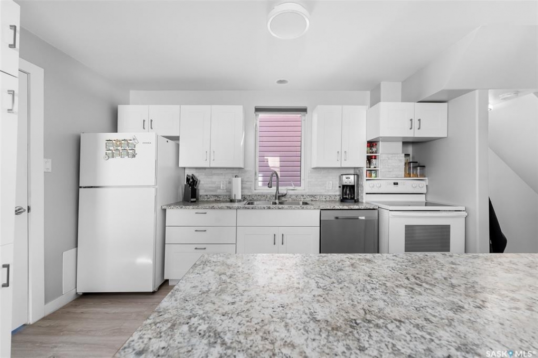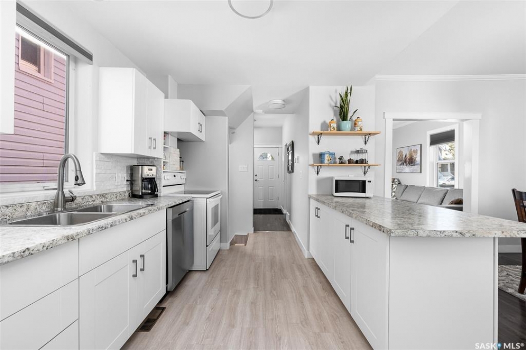 Are you looking for a beautiful character home in the avenues? This could be your dream home! This beautifully updated 2 story home boasts over 1,100 sq.ft. as well as a brand new heated 24'x24' garage and a workshop! With some of the best curb appeal on the block this home features a gorgeous new front deck perfect for that morning coffee. Coming inside you are greeted by a bright and spacious living room featuring engineered hardwood that flows into the dining space! The modern kitchen features heated floors, a large eat-up island and soft close drawers! At the back of the main floor is a cute 2 piece bath that also features a heated floor! Heading upstairs we have 3 good sized bedrooms all with good sized windows. As well as a updated 4 piece bathroom! In the basement we have a rubber floor throughout giving you a large storage area and laundry space. Outside we find a BRAND NEW insulated and heated garage with 2 8'x10' overhead doors, as well as a separate 12'x20' workshop! The yard is fenced and has parking space behind the garage. Some updates over the last couple years: New Furnace '22, New Hot Water on Demand '23, New Air Conditioner '23, new fridge, newer sewer and water lines in '24, plus the new garage! This beautiful character home is move-in ready! Reach out today to book your showing!