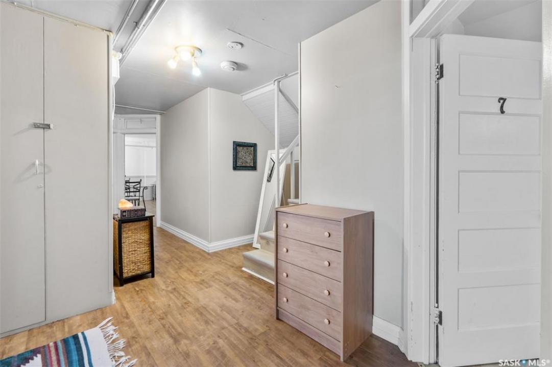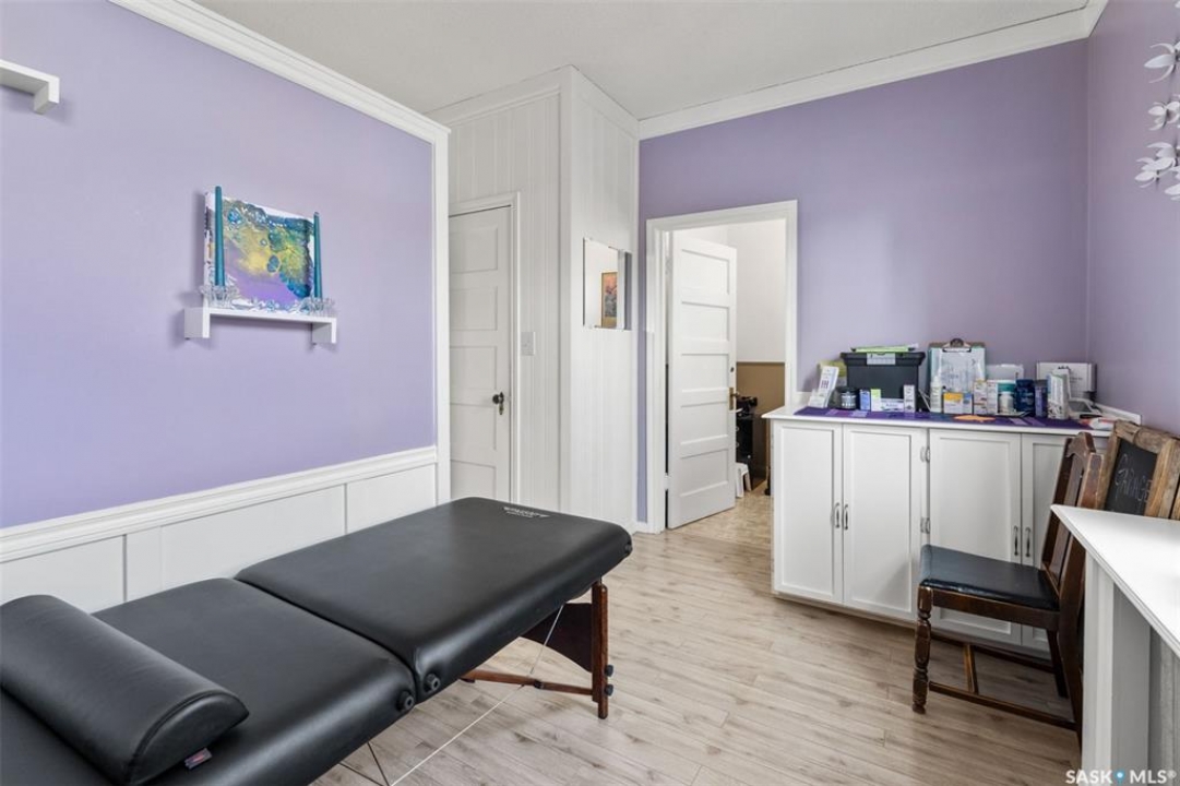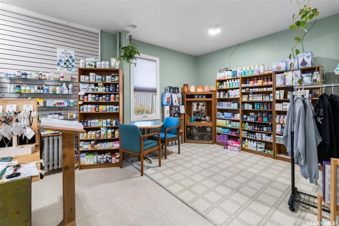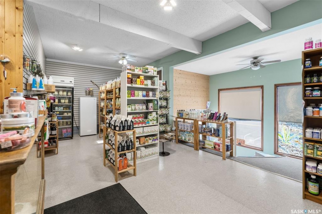Looking for a great opportunity? This building located on Main Street in the busy town of Watrous offers not only a building with store front and 2 bedroom living quarters but 3 - 1 bedroom suites with shared bath on the lower lever plus a detached garage with workshop area and private off street parking. Building has been constantly updated, most recently with asphalt shingles and new sidewalk/paving/curbing. Store front is accessed from the street and has retail area, treatment room, office and a walk in cooler (currently used as storage). Side entrance accesses both up and downstairs, Upstairs at the rear of the building is living quarters with 2 bedrooms, full bath and open kitchen/dining/living room with patio doors to rear deck overlooking the back yard and detached garage. Downstairs you'll find 3 cozy one bedroom suites with a shared 4 pc bathroom. There is also a laundry room and utility room. Outside is a private yard partially fenced with ample parking for all tenants when fully rented. The health market is a long established business specializing in health foods, supplements related giftable items. Watrous is a thriving community with high demand for rentals, giving this property excellent cash flow potential. Call your agent today to arrange your private viewing!