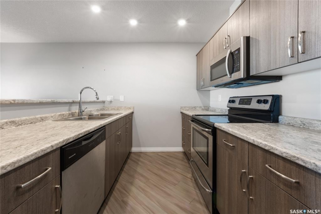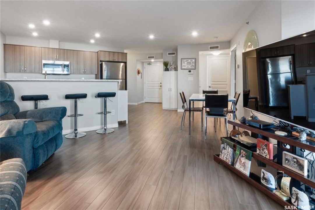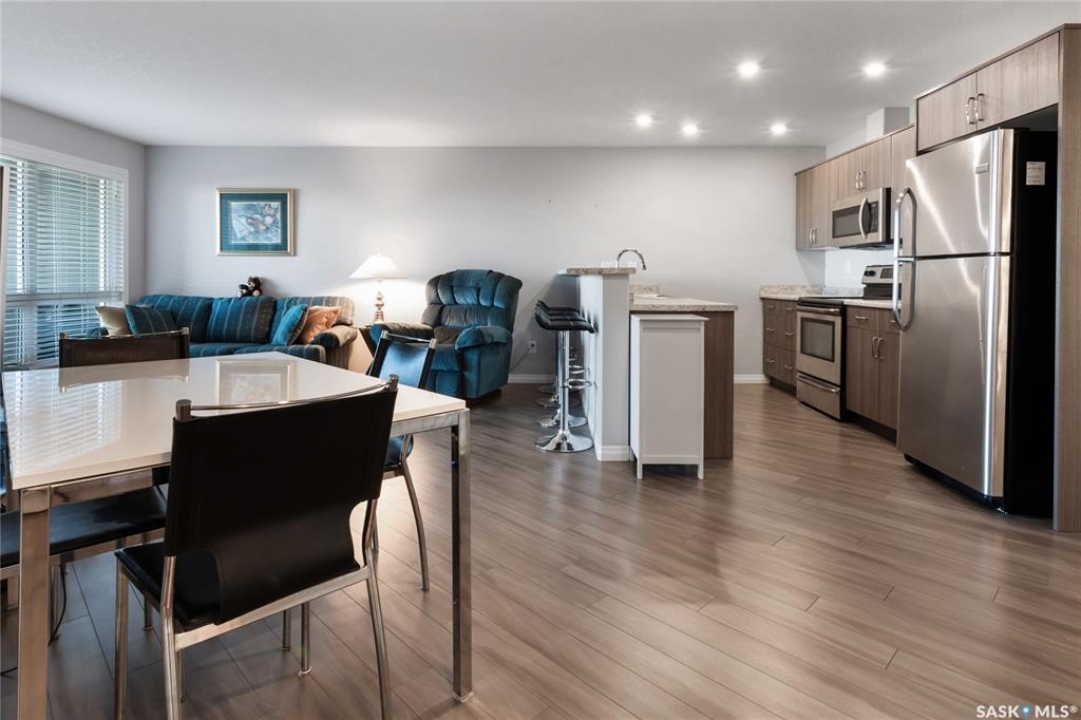 Welcome to 915 Kristjanson Road in Silverspring — a location so convenient you may actually cut your commute time enough to sleep in and still grab a coffee on the way. You're close to shopping, minutes from the U of S, steps from the Meewasin Valley Trail, and have quick access to Circle Drive for those “I swear I'm usually on time” mornings. This top-floor unit faces the beautiful north-east swale — a calm prairie view you can enjoy without ever having to mow it. Inside, the open layout features 1 bedroom, a handy den (office, hobby room, or a place to hide laundry… no judgment), and 2 bathrooms so nobody has to wait their turn. The kitchen includes a peninsula with seating, perfect for hosting, snacking, or pretending you're on a cooking show. The living area leads to a covered deck where you can sip your drink of choice while enjoying fresh air and zero backyard chores. Whether you're a student, professional, downsizer, or someone who simply enjoys a great view and low-maintenance living, this top-floor charmer is ready to make life a little easier — and maybe even a little fun.
