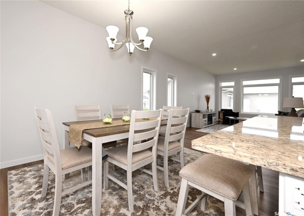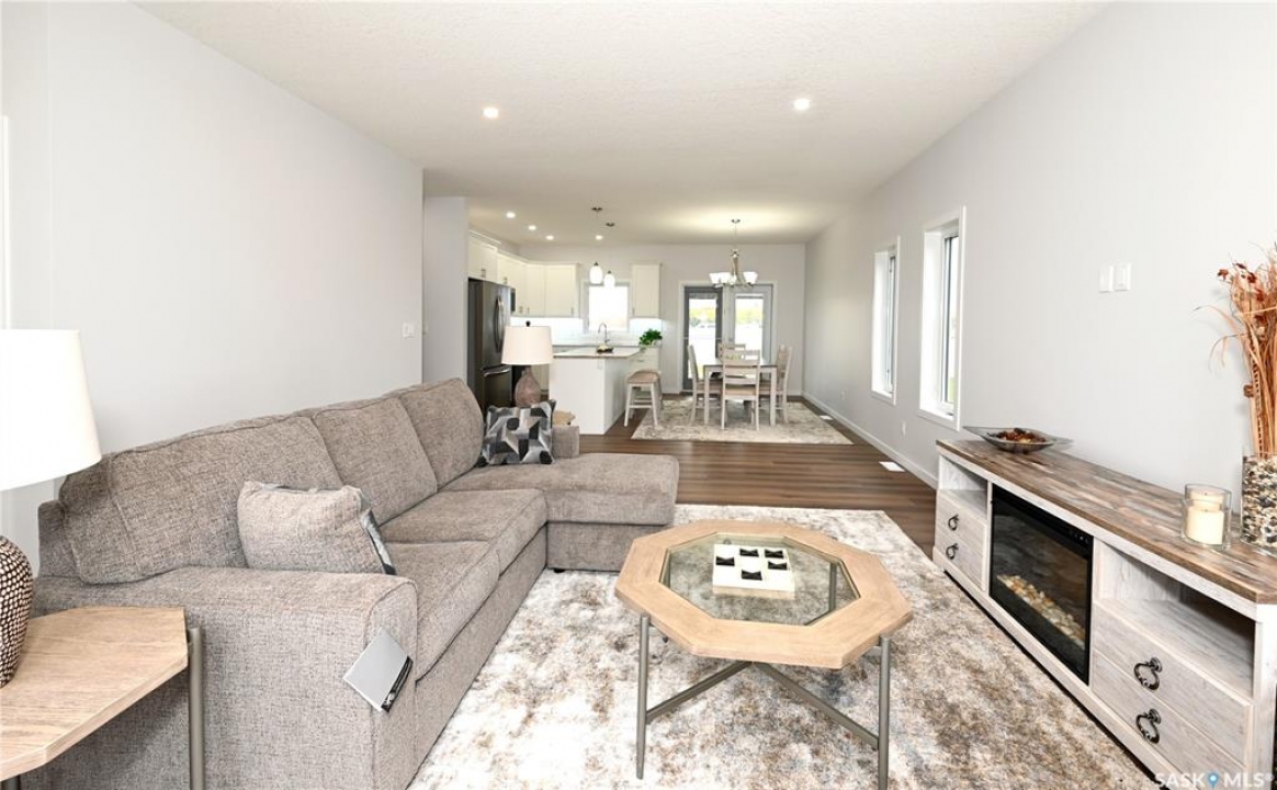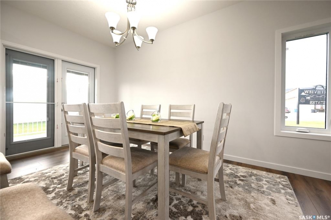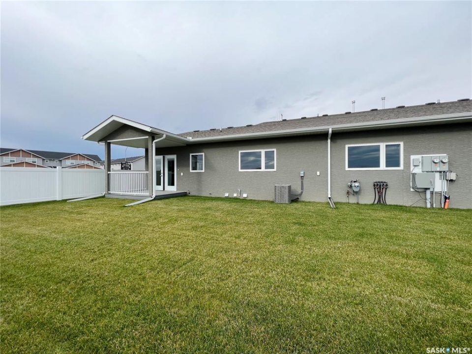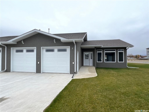 Enjoy the freedom of Northview Estates, built by Hirsch Construction! Upon entering this 2023 development you will notice the street appeal of the low maintenance stucco condos. Bungalow #3 is a stunning 1,304 sq foot condo that perfectly epitomizes modern living, all on one level. The interior offers high end designer finishes, lighting package, quartz counter tops in the kitchen, quality cabinets and flooring, all completed with care and craftsmanship. The 9 ft ceiling and large windows throughout the main floor give the desired bright open feeling one is looking for in a home. The kitchen, dining area, and living room areas are sunny, airy, yet comfortable and cozy with ample space for entertaining. The primary bedroom retreat is large enough for a king bed & includes a walk in closet and an ensuite with double sinks and a walk-in shower. The 2nd bedroom could easily be used as an office. The 4 piece bathroom & main floor laundry complete this floor. This home has a low maintenance deck, with no hassle natural gas bbq hookup, perfect for relaxing with family and friends. Come home and park your vehicles in an insulated, heated, and drywalled, 24' x 26' car garage, safe from all the elements. No more mowing or snow shoveling for you. Enjoy all that Northview Estates has to offer in one Estevan's newest neighbourhoods. Once condo fees are assessed, they will include all City of Estevan utilities, common area maintenance, snow removal, lawn care, and reserve fund. Items to note: HRV system, central vac plus attachments, Dual Low E Argon windows, central air conditioning, water softener, built in microwave, soundproof furnace room, soundproof interior doors, heated crawl space, underground sprinklers, visitor parking. New owner can build fence for a private backyard.
