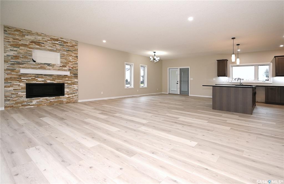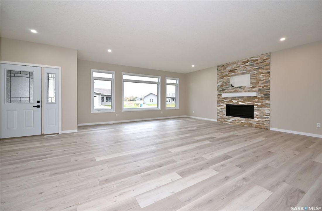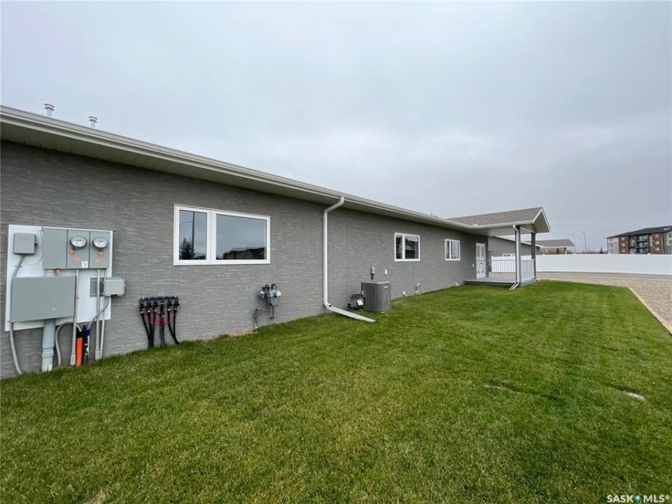 Enjoy the freedom of Northview Estates, built by Hirsch Construction! Upon entering this 2023 development you will notice the street appeal of the low maintenance stucco condos. Bungalow #10 is a stunning 1,846 sq foot condo that perfectly epitomizes modern living, all on one level. The interior offers high end designer finishes, lighting package, quartz counter tops, quality cabinets and flooring, all completed with care and craftsmanship. The 9 ft ceiling and large windows throughout the main floor give the desired bright open feeling one is looking for in a home. The kitchen, dining area, and living room areas are sunny, airy, yet comfortable and cozy with ample space for entertaining. Featured in the kitchen is a counter top gas cooktop with built in fan. A beautiful gas fireplace, framed with faux rock is situated in the living room. The primary bedroom retreat is large enough for a king bed & includes a walk in closet & the ensuite has a quartz top vanity and walk in shower. The 2nd bedroom could easily be used as an office. An added feature is a bonus room which could be used as a walk in pantry, office, or general storage. The 4 piece bathroom & main floor laundry complete this floor. This home has a low maintenance deck, with no hassle natural gas bbq hookup, perfect for enjoying the view with family and friends. Come home and park your vehicles in an insulated, heated, and drywalled, 36' x 26' TRIPLE car garage, safe from all the elements. Enjoy all that Northview Estates has to offer in one Estevan's newest neighbourhoods. Once condo fees are assessed, they will include all City of Estevan utilities, common area maint., snow removal, lawn care, and reserve fund. Items to note: HRV system, central vac plus attachments, Dual Low E Argon windows, central air conditioning, water softener, garburator, soundproof furnace room and interior doors, heated crawl space, underground sprinklers, visitor parking. New owner can build fence for a private backyard.