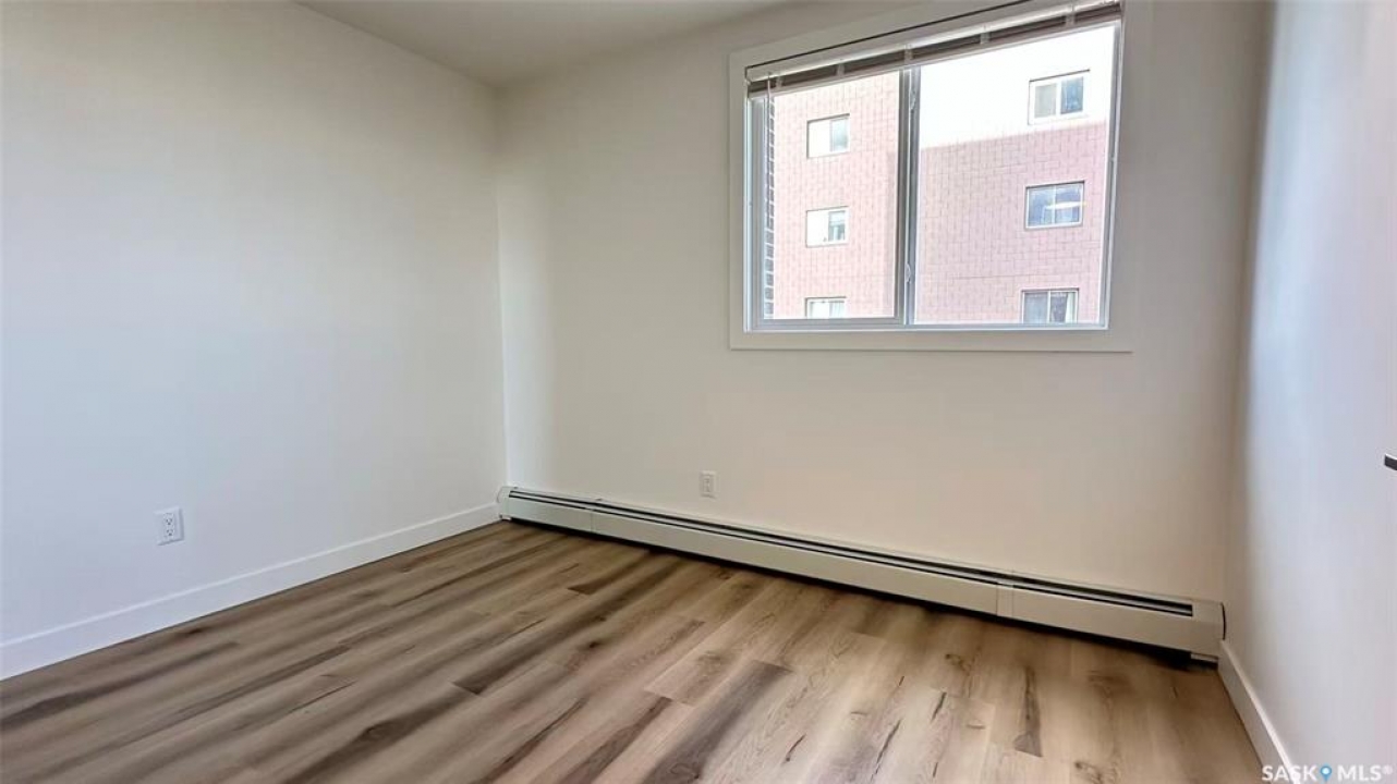 Welcome to 207-4555 Rae Street, a completely transformed second-floor condo in the highly sought-after Elmcrest building, where over $60,000 in professional renovations has created a pristine, move-in-ready sanctuary. This bright, two-bedroom home is situated within a quiet, solid concrete building, featuring the convenience of an elevator for easy access. Step inside to find a flawless interior with brand-new luxury laminate flooring flowing throughout and a fresh, neutral coat of paint in every room, including the spacious private balcony. The heart of the home is a stunning new kitchen, complete with sleek Kitchen Craft cabinets, elegant quartz countertops, and a full suite of stainless steel appliances. This premium quartz is also featured in the modern four-piece bathroom, ensuring a cohesive and upscale feel. The efficient layout includes a separate dining room and ample storage, all enhanced by the bright, east-facing exposure. Enjoy the added perks of secure visitor parking and wheelchair accessibility. Nestled in the vibrant Albert Park neighborhood, you're just steps from parks, gourmet grocers, eclectic restaurants, and boutique shopping. This is a rare opportunity to own a fully renewed, sunny, and exceptionally well-located home in one of the city's most desirable communities.