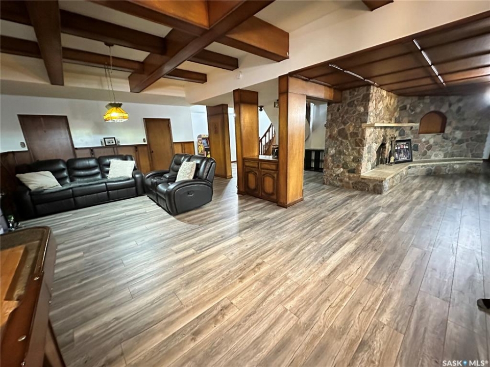 Step into a home where timeless character meets modern elegance. Thoughtfully and beautifully renovated from top to bottom, this remarkable property offers 4,072 sq. ft. of exquisitely planned living space across two levels, plus a sprawling basement ready to become your personal retreat—imagine a theatre room, games area, wet bar, and more. From the moment you walk in, warmth and sophistication surround you. Three functional wood-burning fireplaces anchor the home, creating inviting spaces perfect for gathering, relaxing, and truly living. Every room has been curated with intention, blending classic charm with refined contemporary finishes. The heart of the home is the stunning, fully updated kitchen—renovated with elegance and everyday function in mind. High-end finishes, thoughtful storage, and seamless flow make it a space you'll love to cook in, entertain in, and simply enjoy. With 5 spacious bedrooms, 4 bathrooms, and a dedicated office, the layout offers both comfort and flexibility for families, professionals, or anyone seeking an elevated lifestyle. The east side of the home features a large, well-planned laundry room designed to make daily living effortless. A newly renovated sauna and shower room provides an additional touch of luxury—crafted with you in mind for ultimate relaxation. Step outside to a carefully planned, fully fenced backyard that feels like a private haven. Backing directly onto green space with walking paths, a track, and a disc golf course, it offers peaceful views and endless recreation right at your doorstep. The location is unmatched—just moments from the high school, arena, and community amenities. This is more than a home. It's an experience—an exclusive opportunity for the discerning buyer who values beauty, quality, and purposeful design.