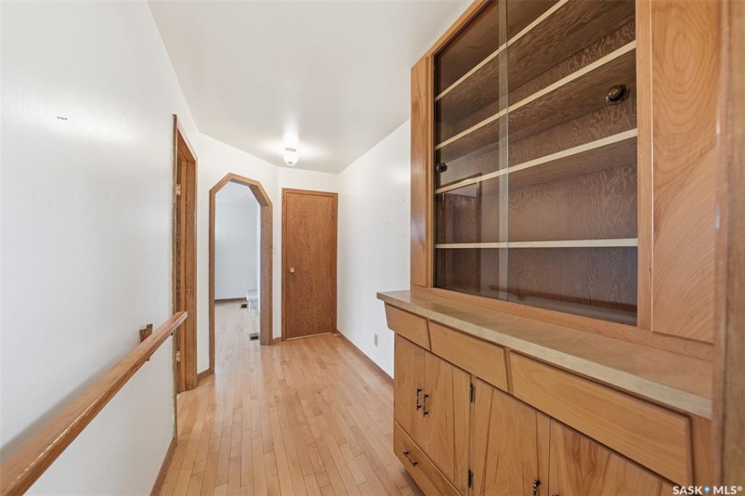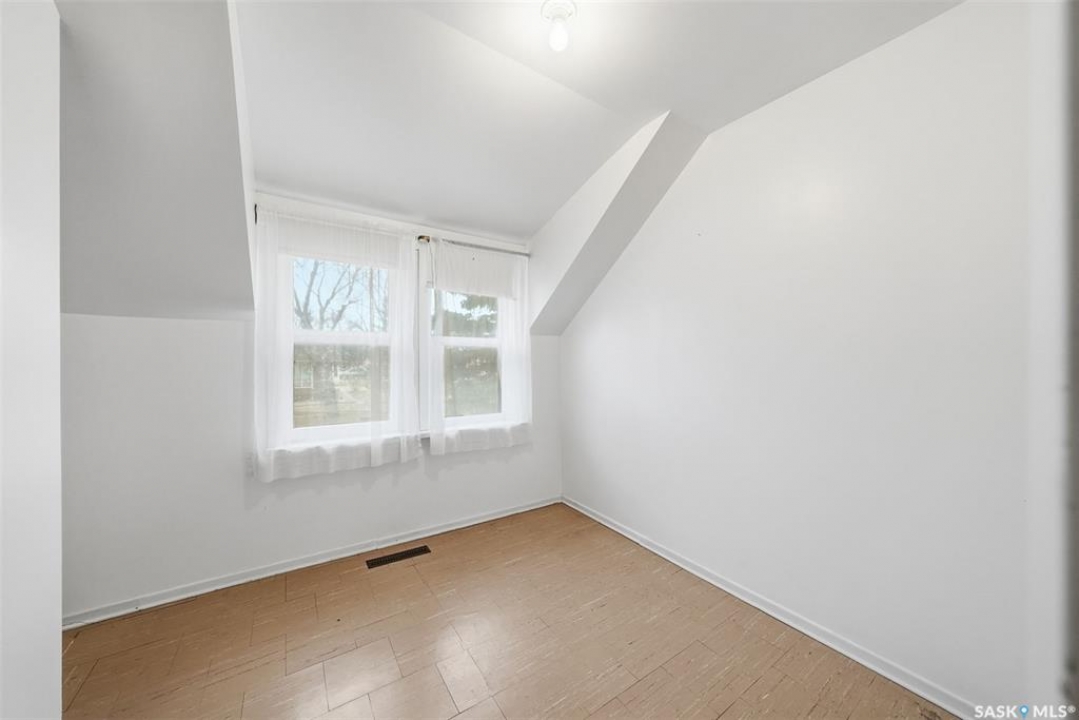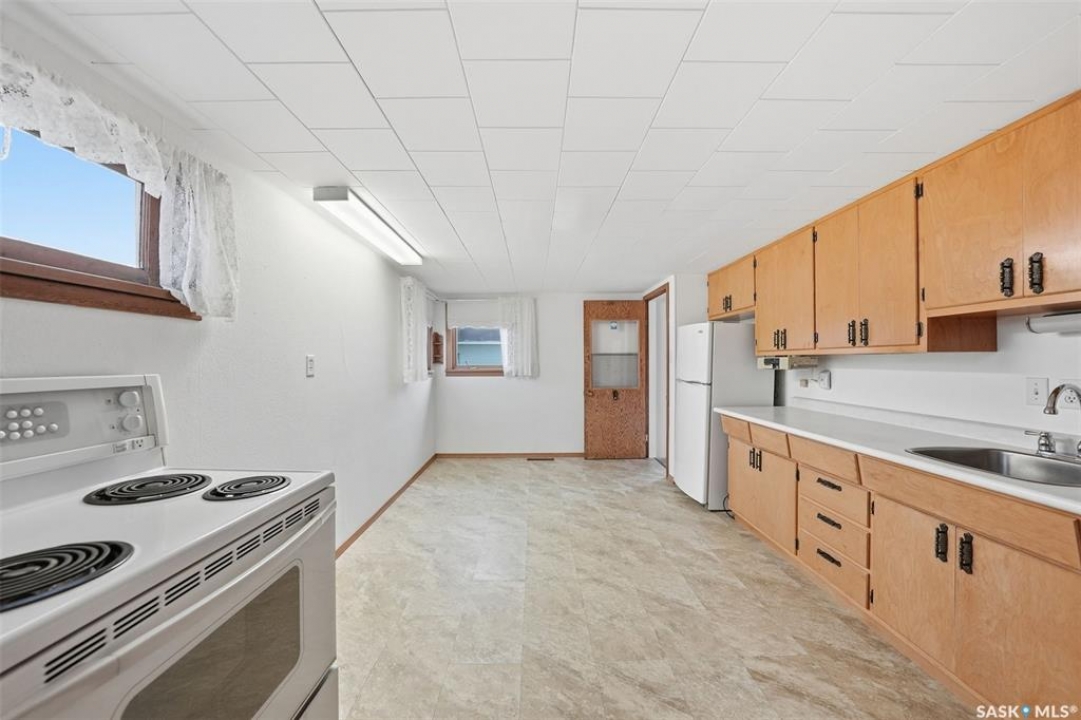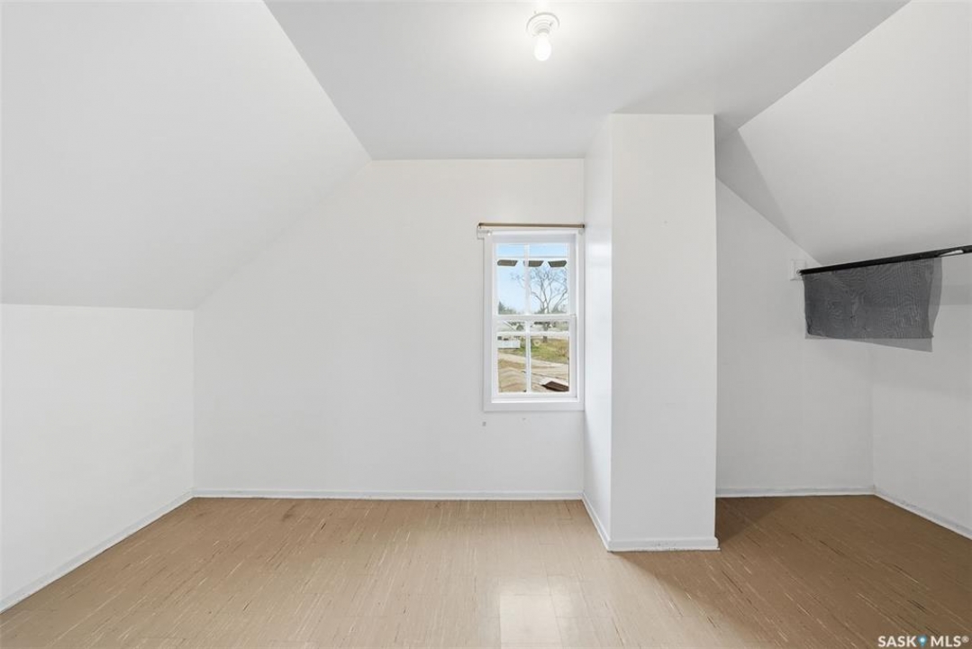 This 1 1/2 story home, situated on a 75x120ft lot, is ideally located near rink/ball diamonds and the downtown area. As you approach, the inviting front veranda sets the stage. Step into the cozy front porch and walk directly into the bright, open kitchen and dining area—an inviting space ideal for everyday living. Just off the kitchen/dining room is a convenient 4-piece bathroom. The main floor features a warm and welcoming layout complete with a comfortable living room highlighted by beautiful maple hardwood floors, as well as a main-level bedroom that offers flexible use as a guest room, office, or additional living space. Upstairs, you'll find three additional bedrooms, providing plenty of room for a growing family, hobbies, or storage. The basement includes a storage area and additional laundry hookups, as well as housing the furnace and water heater. Outside, there is a massive 22'-0" by 44'-0" garage that would be perfect for your projects, toy storage or even a home business. This home combines classic charm with some modern updates, making it ideal for families or as an investment property.