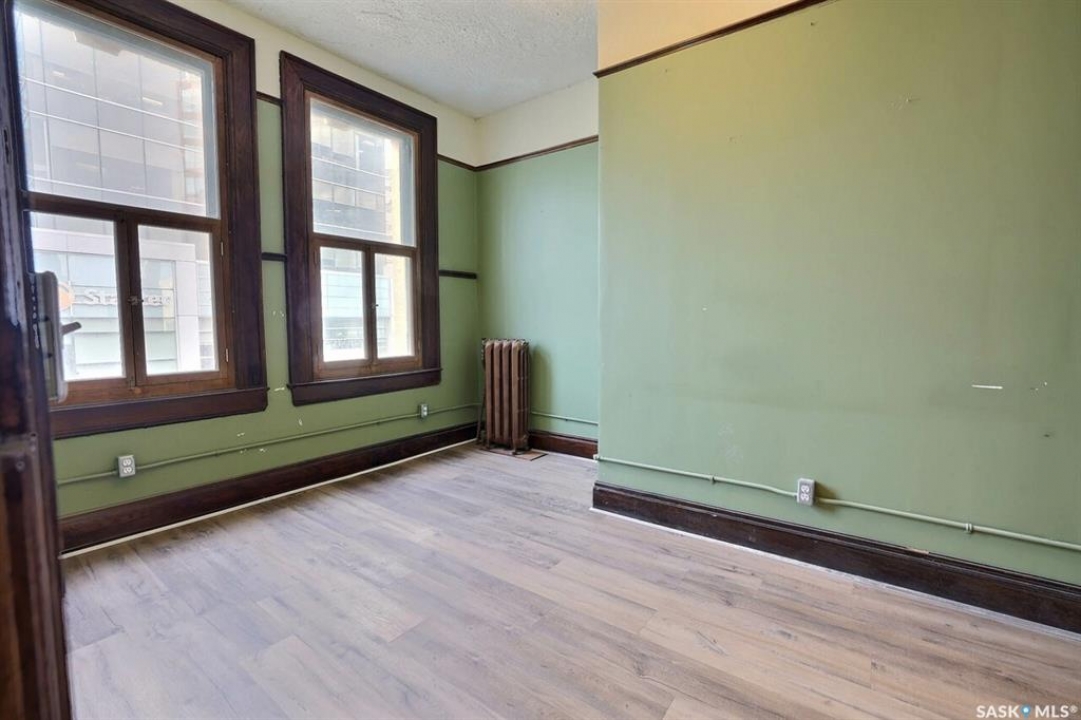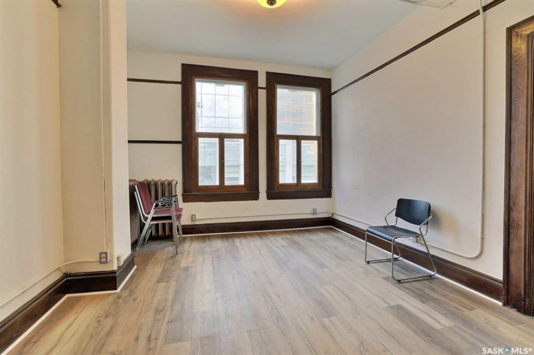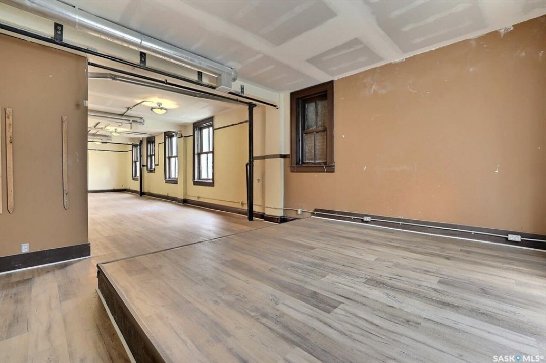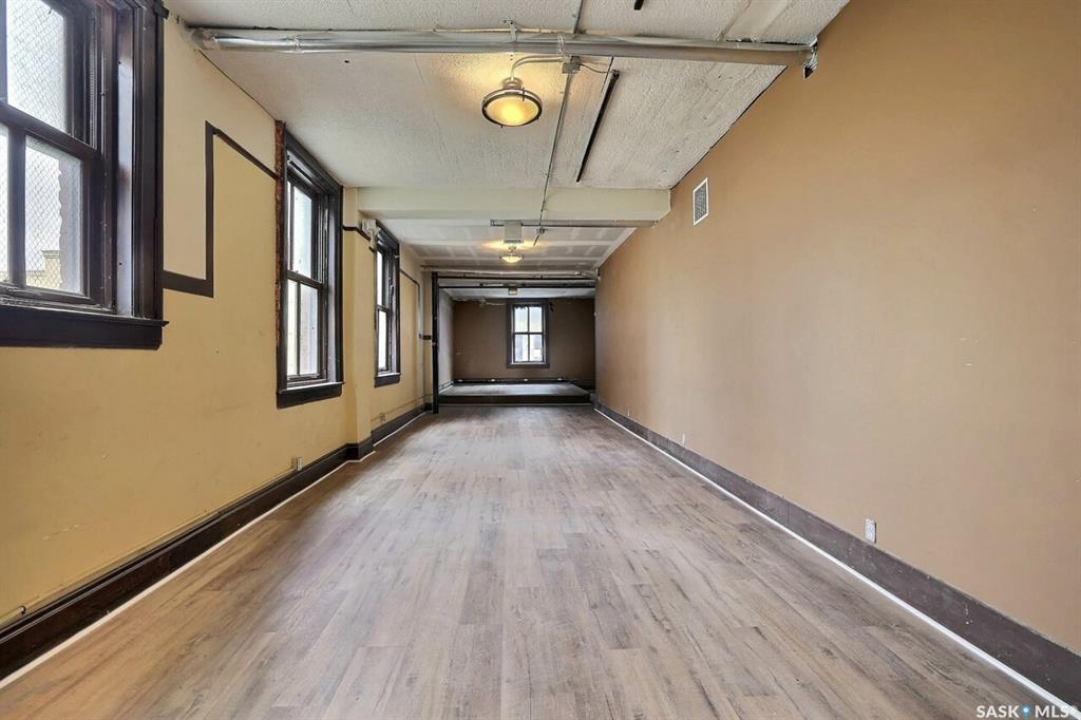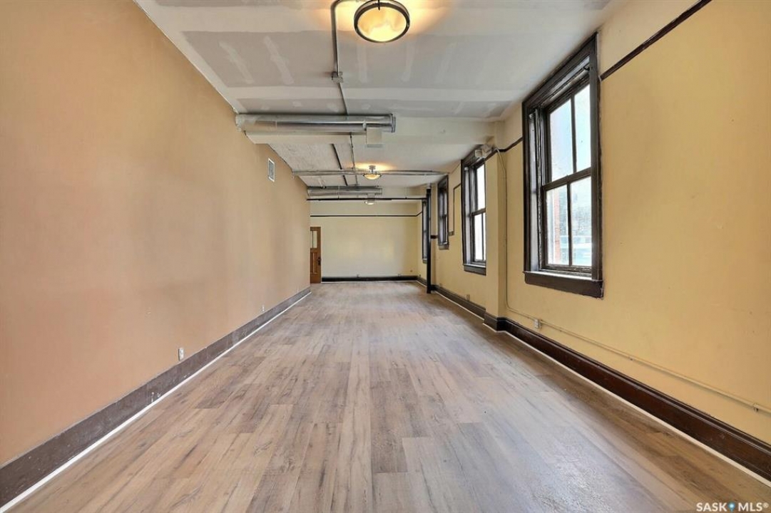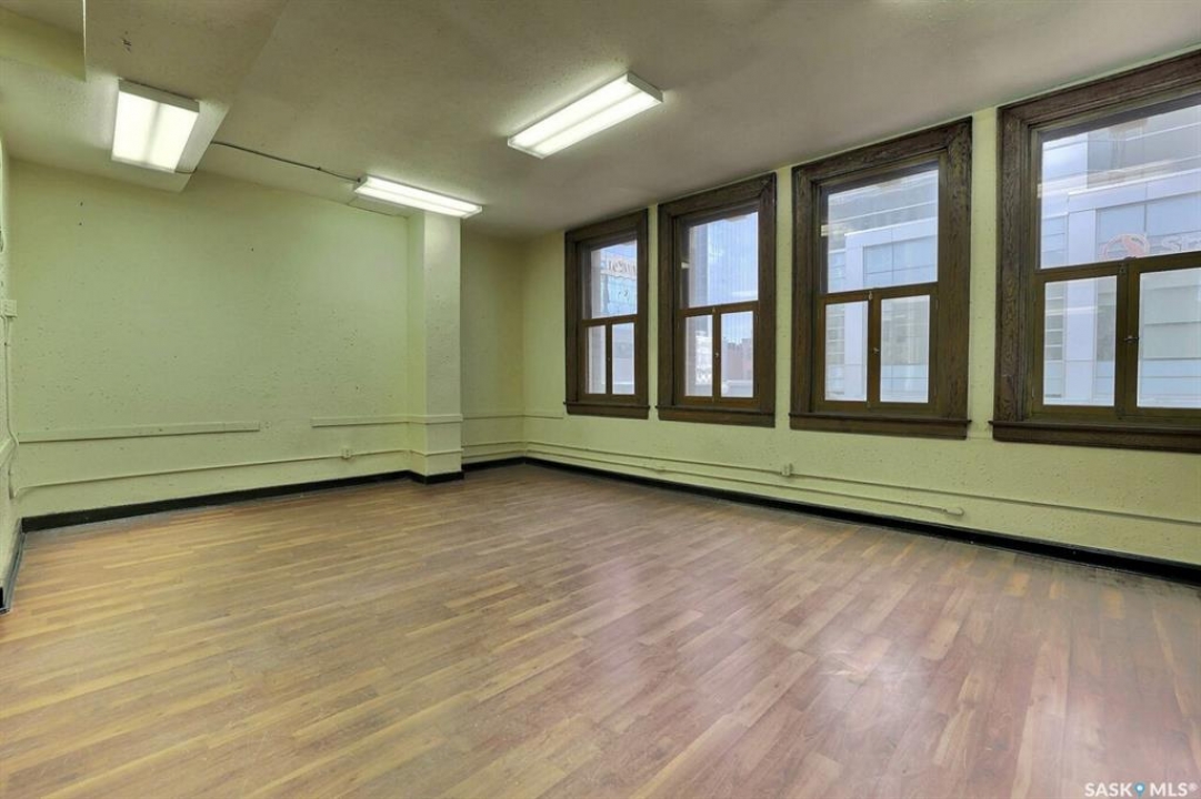 This historic three-storey building is located in the heart of Downtown Regina, surrounded by prominent local businesses and notable landmarks. The top two floors are available for lease, offering approximately 2,500 sq. ft. per level. These flexible spaces are well-suited for a wide range of uses, including office environments, studios, meeting rooms, or workshop space. The landlord is open to subdivision and will work with the tenant to customize the space to their requirements. The main floor is home to Lancaster Taphouse, a long-standing and well-established anchor tenant.