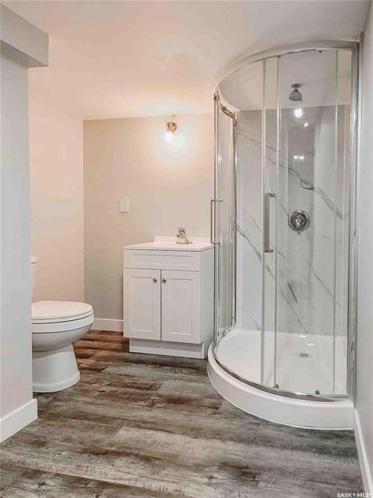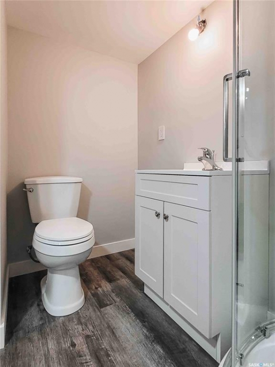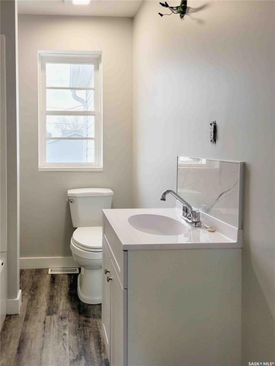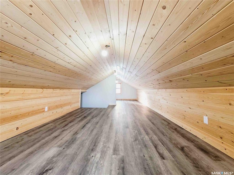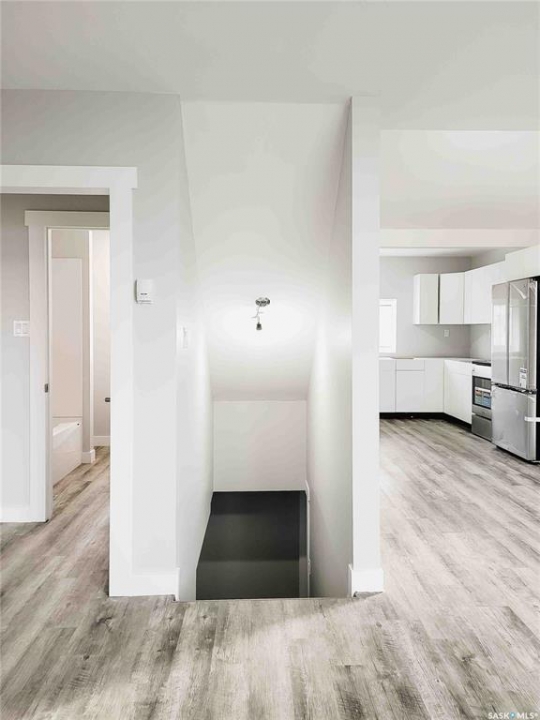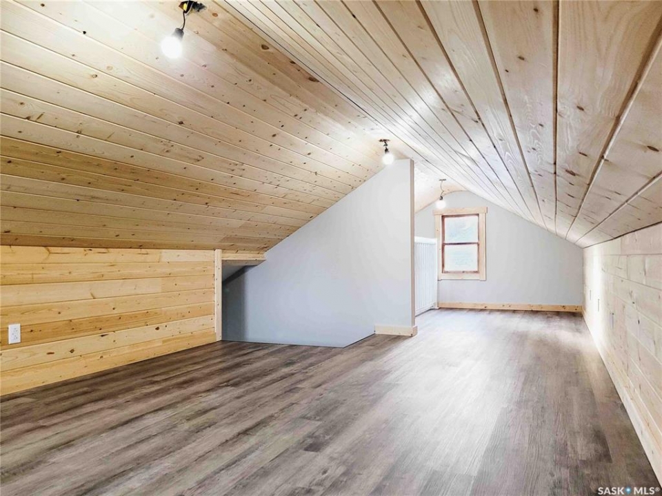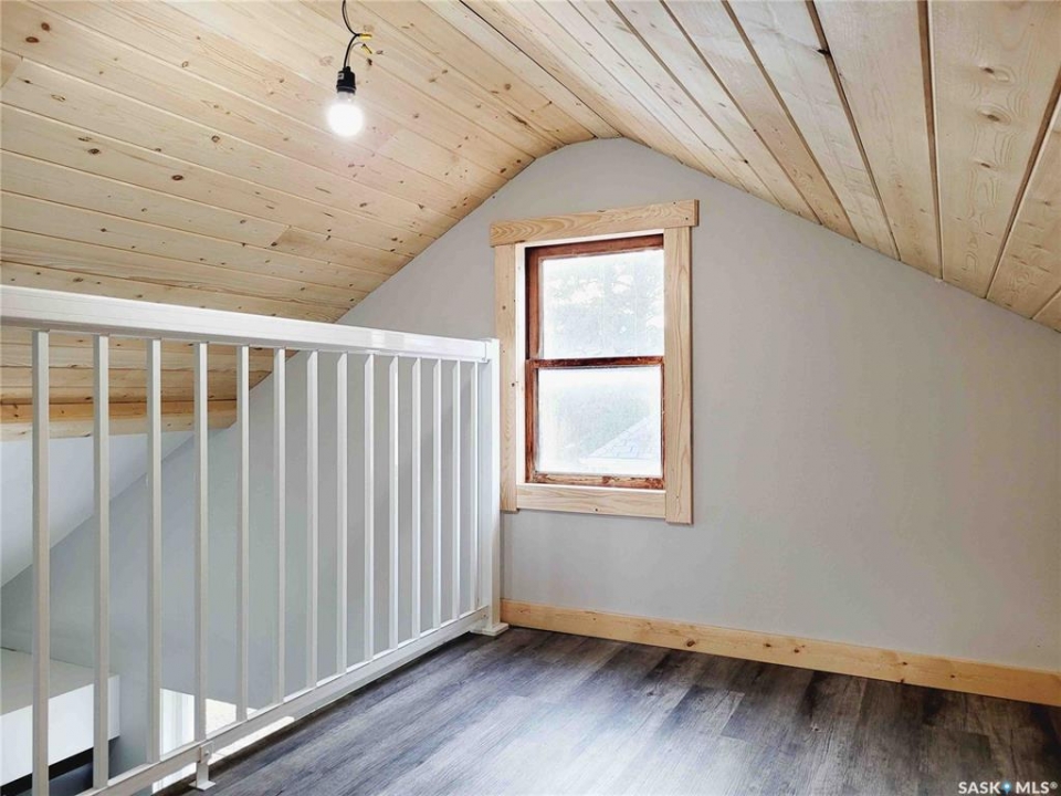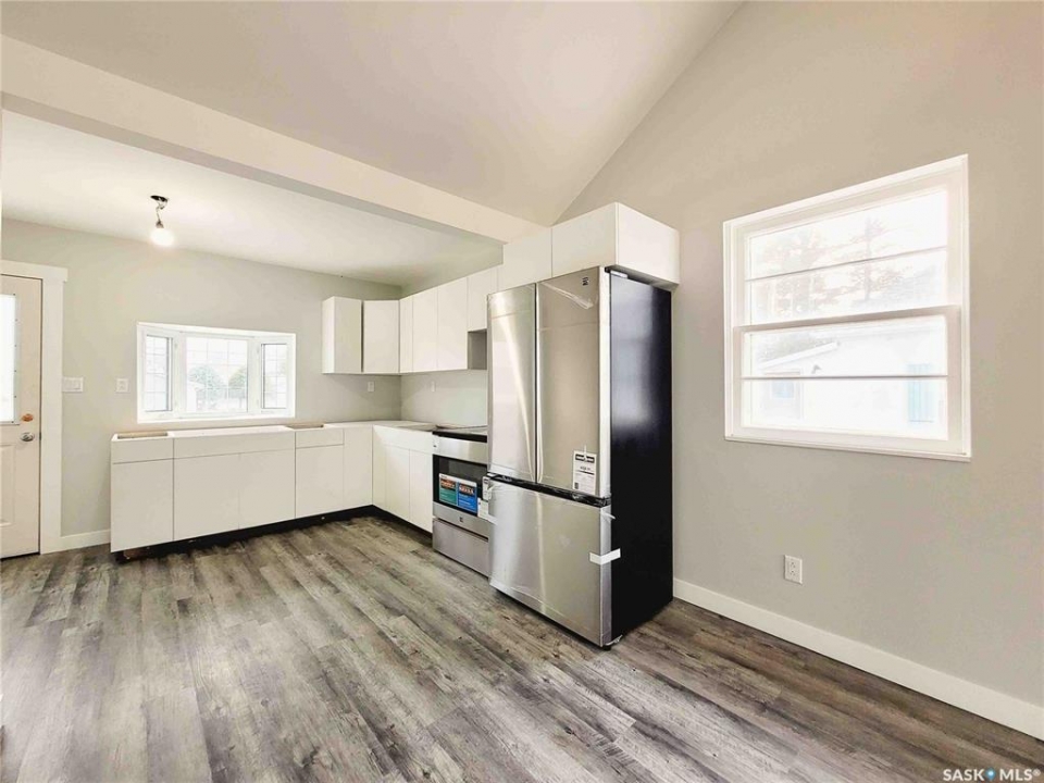 Experience this renovated and restored home in Elrose. This property is suitable for both first-time buyers and those looking to downsize, featuring new finishes throughout. Every corner of the home has seen improvements, from the front door to the cathedral ceiling and loft. The open concept kitchen, dining, and living room is bright and welcoming, receiving natural light from three sides. A wall was removed to create a more spacious flow, and the ceiling was raised to develop a loft space with a balcony overlooking the kitchen. The kitchen is equipped with new white cabinets, stainless-steel appliances, and a small bay window that provides a view of the deck on the south side. On the main floor, there are two bedrooms and a new 4-piece bathroom. The fully finished concrete basement includes a large recreation room, a third bedroom, and a sizable 3-piece bathroom featuring a glass shower. Laundry connections have been added in two areas: just outside the basement bathroom and in the utility room. The plumbing has been updated with PEX lines, and every tap has individual shut-offs for both hot and cold water. The hot water tank is new as of 2025, and the HE furnace is from 2022. The electrical system has also been updated, with a new 200 amp panel installed. New vinyl plank flooring extends throughout all three levels of the home, and all of the basement windows are brand new. The finishing touches are being done even as this lovely home comes on the market.