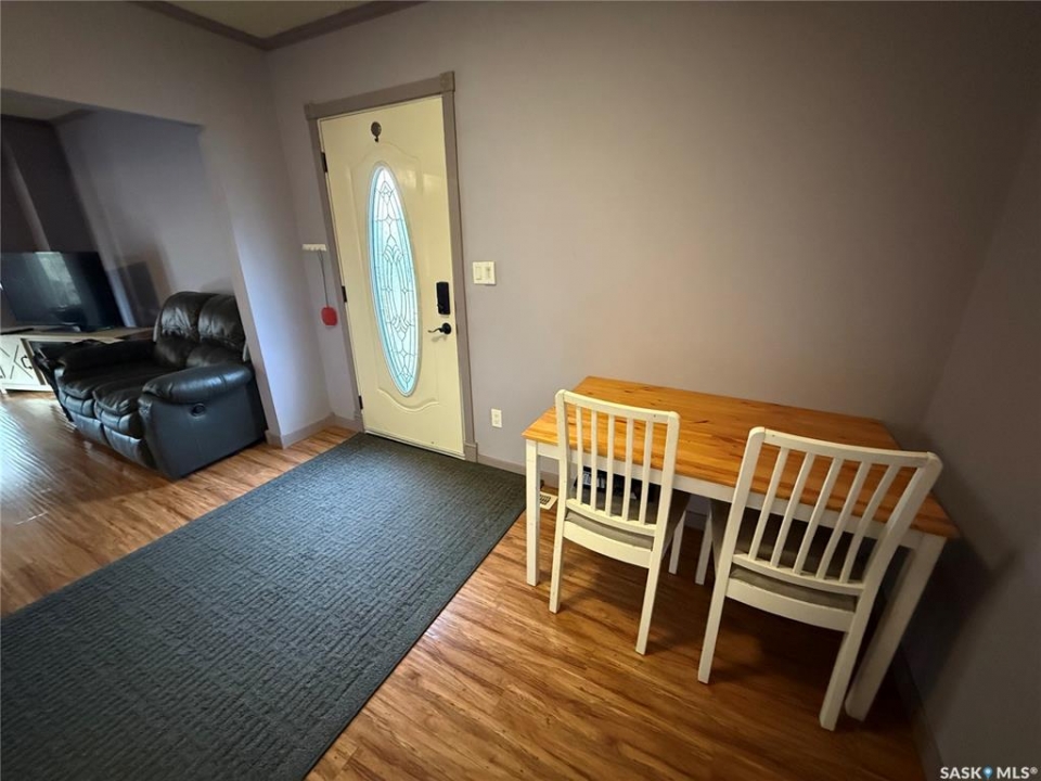 Super charming one and a half storey home in Estevan with a large fenced in deck and patio area perfect for summer enjoyment and entertainment. This home has a bright open kitchen and dining area that leads into a spacious laundry room with tons of room for additional storage. The living room is open to the four season sunroom which allows for extra space for the kids to play with direct access to the fenced in out door living space. The four piece bathroom completes the main. Upstairs there are two large bedrooms. The 32'x14 workshop is perfect for the handyman or hobbyist.