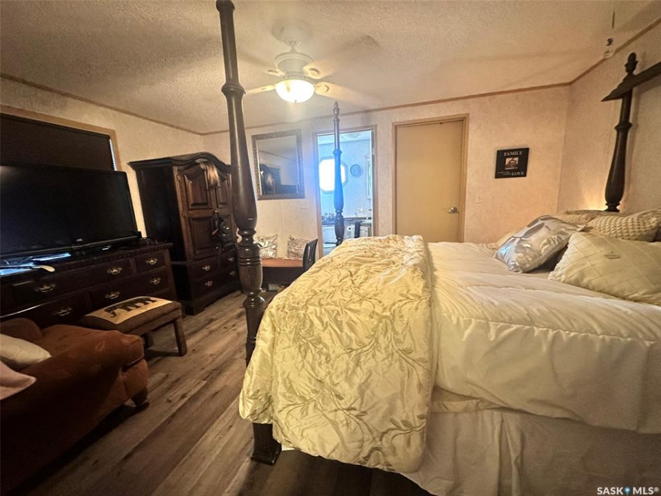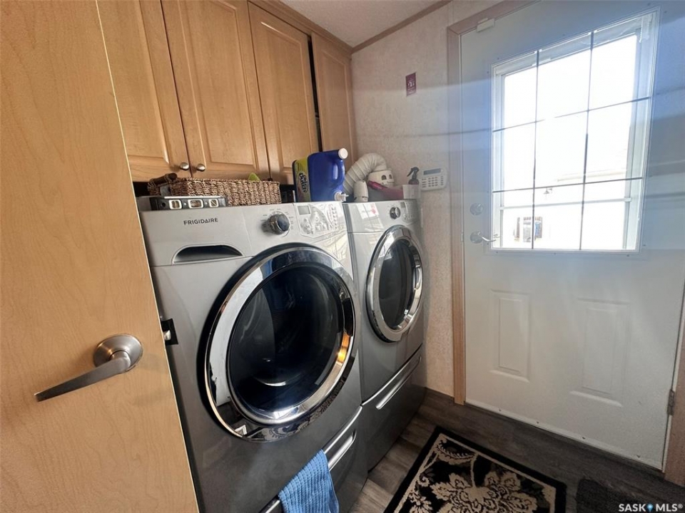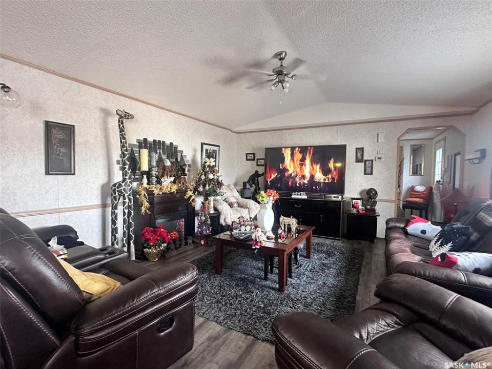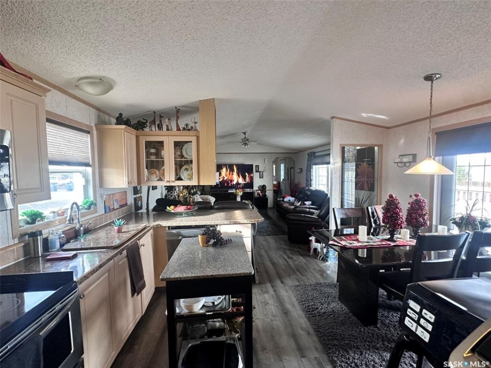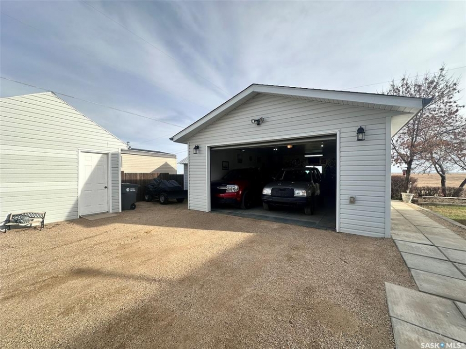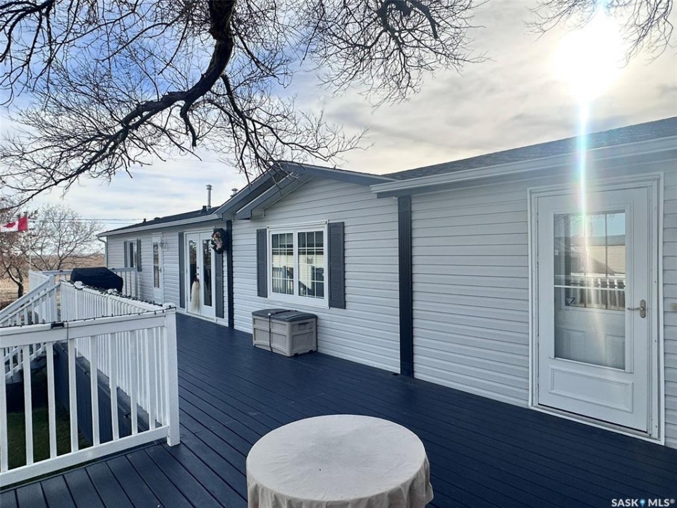 Located on the quiet east edge of the Town of Assiniboia, this beautifully maintained property is truly move-in ready. The home emphasizes open-concept living, featuring abundant natural light from large windows. The kitchen is fully equipped with an island, pantry, updated cabinetry, and upgraded stainless steel appliances. The desirable split-bedroom floor plan includes a luxurious master suite complete with a 4-piece ensuite bath (featuring a Jacuzzi tub) and a huge walk-in closet, while two additional bedrooms and a second 4-piece bath are situated on the opposite end—one of which also has a walk-in closet. Step outside to enjoy the extremely large deck, which measures approximately 32 feet long and is divided into an two areas one approx. 16x16 ft and another of approx. 16x10 ft, all while overlooking an unbroken prairie view. The deck also features convenient under-deck storage. For the hobbyist or car enthusiast, double detached garage (approx. 20 x 30 ft) is fully insulated, heated, and provides exceptional space, truly serving as the ultimate "Man Cave." Property bonuses include 2 storage sheds, RV parking with a 30-amp hookup, and a generator plug for back-up convenience. Home has insulated deck skirting and a thermal barrier underbelly.