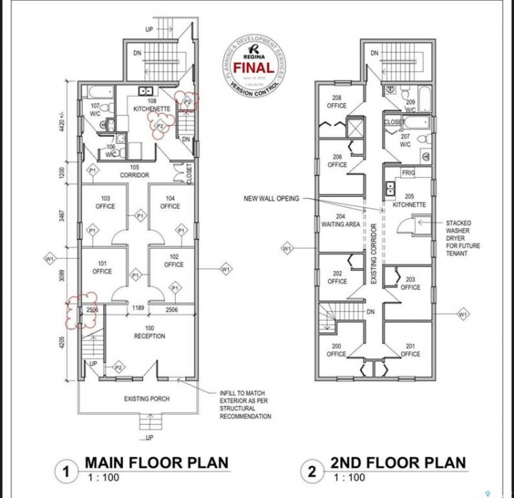 Newly renovated multi-unit building at 1817 Osler St, perfect for offices, studios, or small businesses. There are two separate floors/units available for rent. Main floor unit features 4 office rooms(each room available at $500 per month), waiting/reception area, 2 washrooms and kitchen/lunch area. The second floor features 6 office rooms(each room available at $350 per month), with 2 washrooms, waiting area, laundry area and a shared kitchen/lunch area. Full-floor rentals are also available at $2,000/month for the main floor and $1500 for the second floor. Each floor includes 2 parking spots, with additional street parking in front. Conveniently located near to downtown, local amenities, restaurants, and public transit.