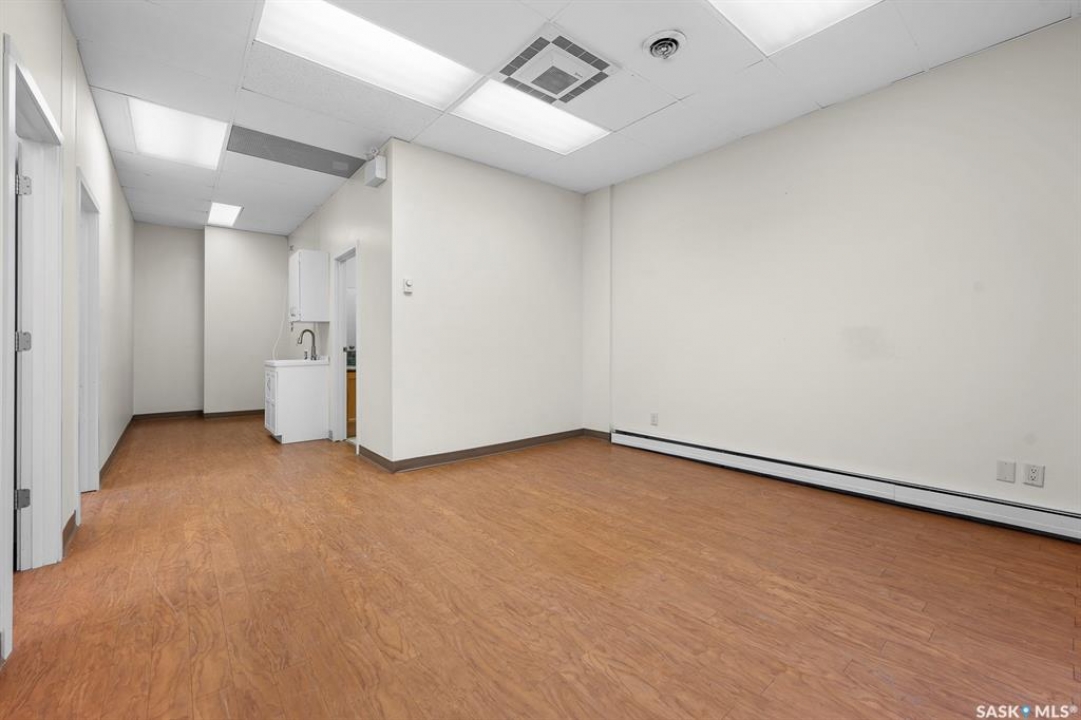 ASKING RENT IS INCLUSIVE OF ALL OPERATING COSTS AND UTILITIES ! GREAT DEAL ! Located in the prestigious Canadiana Building on 23rd Block Broad, this approximately 765 sqft turnkey office is available immediately and perfect for entry to mid-size businesses seeking a professional workspace close to downtown and Wascana Park. The space features a reception area, a large open space suitable for a boardroom or meetings, two private offices, and a sink with a small kitchen area, providing a move-in ready environment in a prime location. There are two parking stalls included.