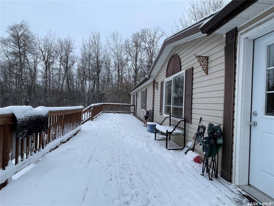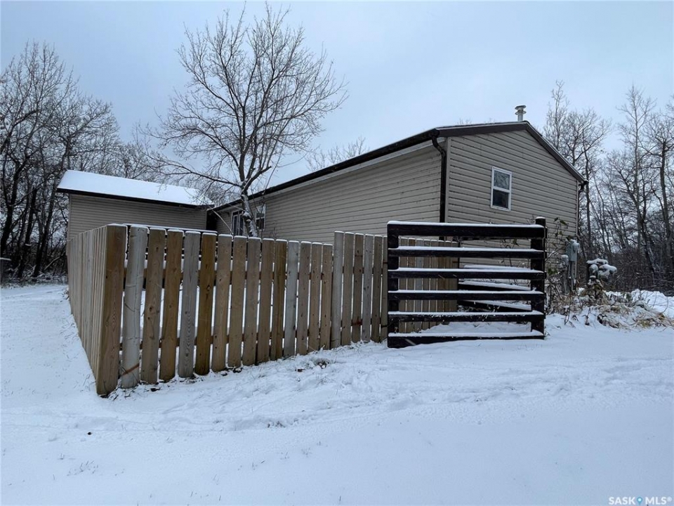 Check out this spacious 2005 mobile with 3 bedrooms, 2 full bathrooms and 1540 sq. ft. of living space. This home boasts an open concept design that features ample cabinetry with a kitchen island, a skylight, and built-in china cabinet. Primary bedroom hosts a large walk-in closet and 4 pc ensuite. There was an addition completed in 2012 that consists of a bedroom and a large family room featuring an electric fireplace and a projector with pull down screen. Patio doors off the dining area lead onto a 12' x 14' deck and an area that is fenced in for your furry friends. The deck on the front runs the entire span of the home and is great for entertaining. Shingles were replaced in 2024. Double detached garage is not heated or insulated but provides a roof for your vehicles or great dry storage. This home sits on a large lot measuring 108' x 300' and is surrounded by trees giving you the feel of an acreage within City Limits.