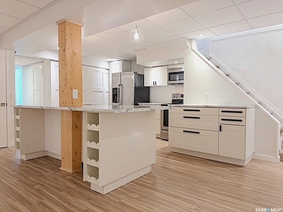 Welcome to 751 4th Avenue NE — a fully renovated, 5-bedroom, 2-bathroom home in Swift Current's highly sought-after North East! This beautifully updated property offers modern comfort, income potential, and an unbeatable location just steps from ACT Park and the city's scenic walking path. The main floor features three comfortable bedrooms, a fully renovated 4-piece bathroom, and an impressive kitchen complete with solid oak cabinetry, a sit-up island with added storage, and a spacious dining area with built-in cabinetry. Bright, warm, and functional — it's a perfect layout for daily living and entertaining. The lower level has been completely transformed into a fully contained 2-bedroom suite, ideal for generating revenue or hosting extended family. You'll love the open-concept kitchen and living area with stainless steel appliances, a bright modern bathroom, and two bedrooms — one featuring a Murphy bed, making it the perfect dual-purpose office/guest room. Outside, the fully fenced backyard offers underground sprinklers, a garden space, and a detached garage. Major recent upgrades include newer shingles, electrical, PVC windows, updated plumbing, furnace, water heater, and central air conditioning, ensuring comfort and efficiency for years to come. Located just 20 steps from ACT Park — complete with a basketball court, hockey rink, spray park, and playground — this home delivers the lifestyle families are looking for. Walking distance to K–8 and high schools, restaurants, and essential services, this is North East living at its finest. A beautifully updated home with income potential in a premium location — don't miss your chance to make 751 4th Avenue NE yours! For more information or to book your in person or virtual tour, Call today!