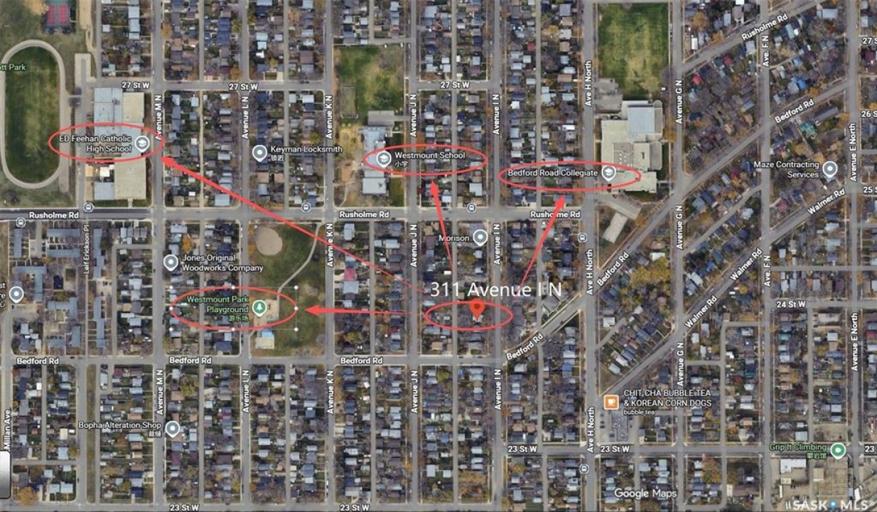 Welcome to 311 I Avenue N, a home with a raised basement, ideally located in the established Westmount neighbourhood. This area offers excellent walkability—just steps from Westmount School, Bedford Road Collegiate, Westmount Park Playground, childcare centres, local shops, and convenient transit routes. The home features 4 bedrooms, 3 bathrooms, and a bright raised basement with a non-conforming one-bedroom suite that has its own private entrance—perfect for extended family or potential rental income. Additional highlights include a double detached garage (boarded) plus two extra parking spaces in front of the garage, providing ample off-street parking. Situated on an R2-zoned lot, the property also offers flexibility for future redevelopment. This home presents an excellent opportunity for buyers looking to update, invest, or customize while enjoying a central location close to schools, parks, amenities, and major commuter roads.
