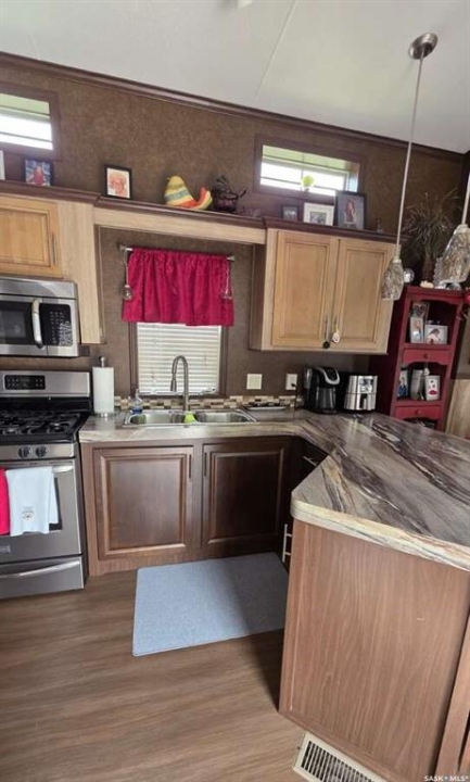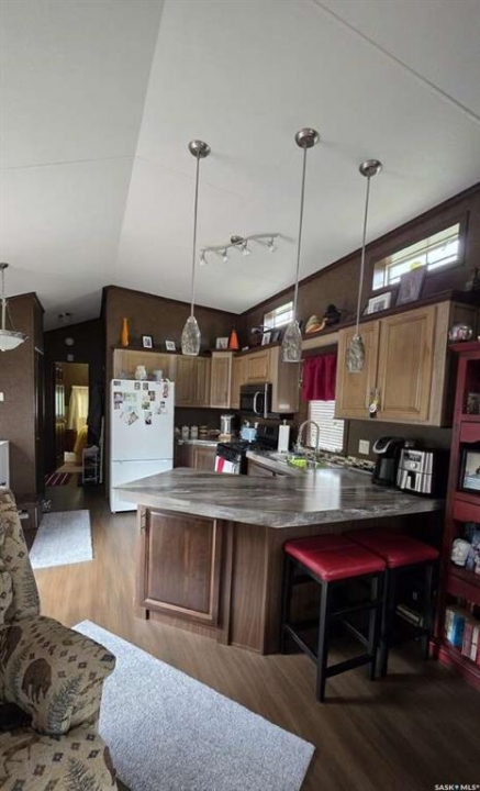 For more information, please click the "More Information" button. Welcome to this charming cottage-style park model home, ideal for those looking for a peaceful retreat or a thoughtfully designed starter home. Situated on an oversized lot, this beautifully maintained one-bedroom, one-bath residence combines modern comfort with cozy character. Perfect for couples looking to downsize, the home features essential appliances including a gas stove, refrigerator, washer, dryer, and air conditioning to ensure year-round comfort. The interior is bright, clean, and welcoming, with partial furnishings included to make your move seamless. Whether you're seeking tranquility, simplicity, or a smart investment, this delightful home offers the perfect blend of comfort, functionality, and style. Don't miss your chance to make it yours! All measurements are approximate.
