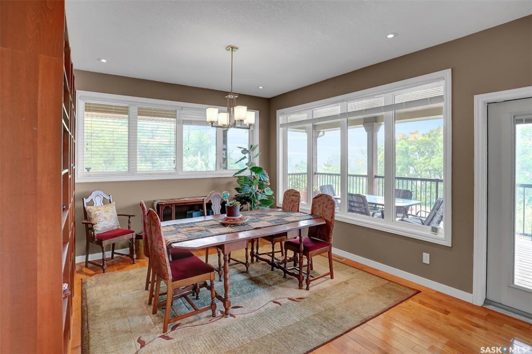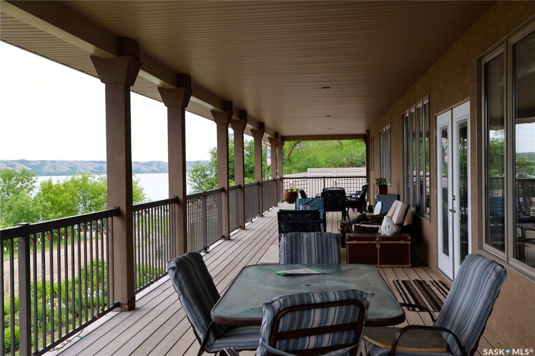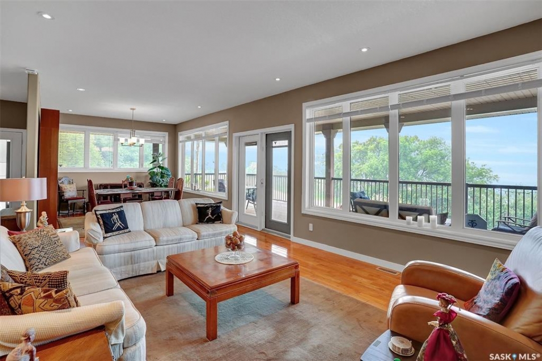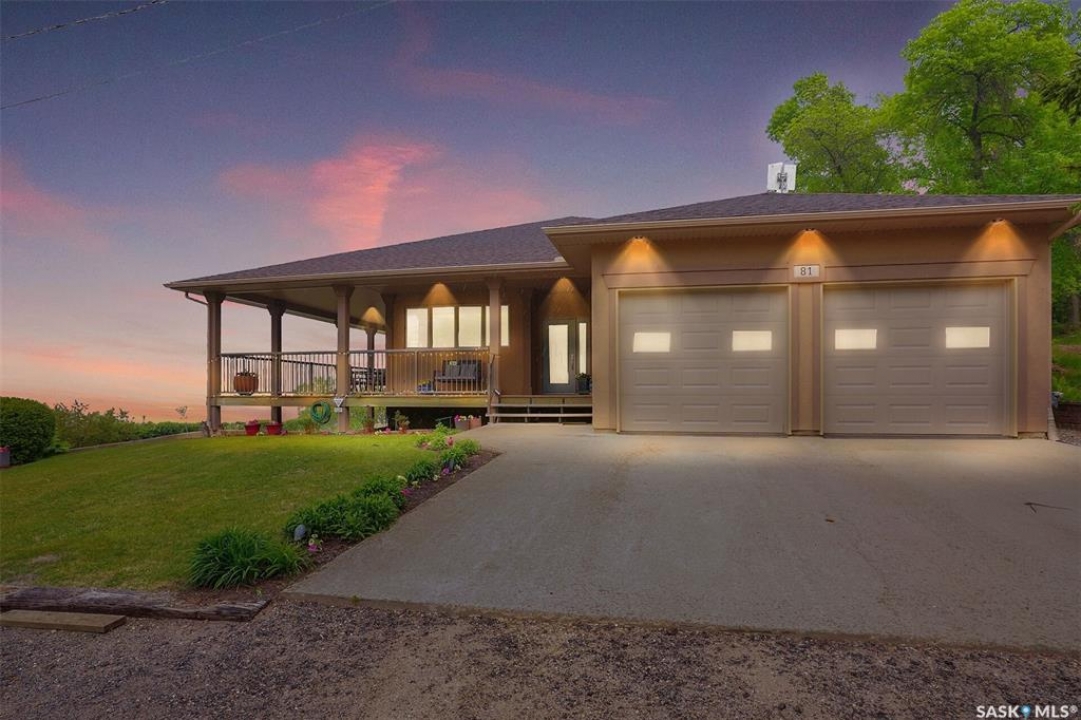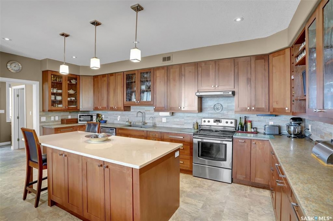 Welcome to 81 Kinsley Place at Mission Lake! WOW! This large walkout delivers incredible, unobstructed views to the lake! This custom, thoughtfully designed home offers an abundance of both luxury and practicality! The main level features 3 good size bedrooms + the primary suite that proudly includes a great 3 pc ensuite, walk in closet, and large windows. The formal dining area is open to the living room with gorgeous hardwood floors. The large kitchen is a chef's dream with nutmeg maple cabinets, large island with a quartz top, S/S appliances (Kenmore Elite freezer/fridge combo), built in pantry with rolling drawers, wine rack, tons of counter space/storage and added pot lights. There is a convenient flex room and 2 pc bath tucked away behind the kitchen. The main bath and ensuite boasts heated flooring. The large laundry room includes the washer and dryer, sink, and more storage capacity. The impressive walkout level showcases an 1800 sq ft suite with a large kitchen with crisp white cabinets, full set of appliances, 3 bedrooms, private laundry room, a full 4 pc bath, and patio doors that lead to a large, private patio space. The exterior of this property includes a retaining wall, swale, garden area, ample parking, and a super impressive covered deck that spans the entire length of the home where you could easily have 75+ people comfortably enjoying the sunrise or the sunsets! There has been many large gatherings and even a few weddings on the property! A large insulated and heated double garage with a workshop completes this property. Other important noteables - steel beam construction, original owners, central vac, central air, air exchanger, original drawings available. A true gem in the land of the living skies!