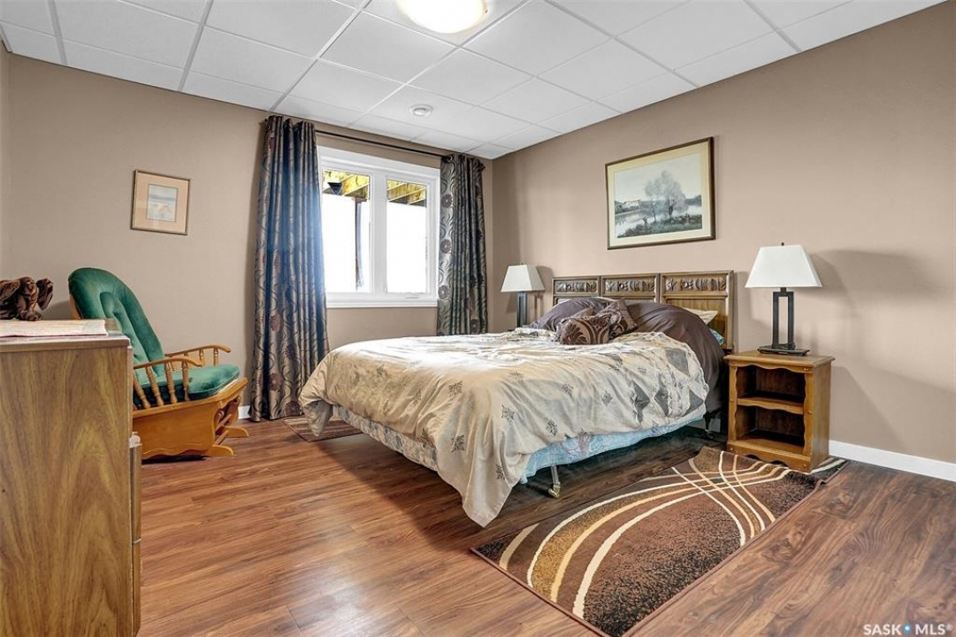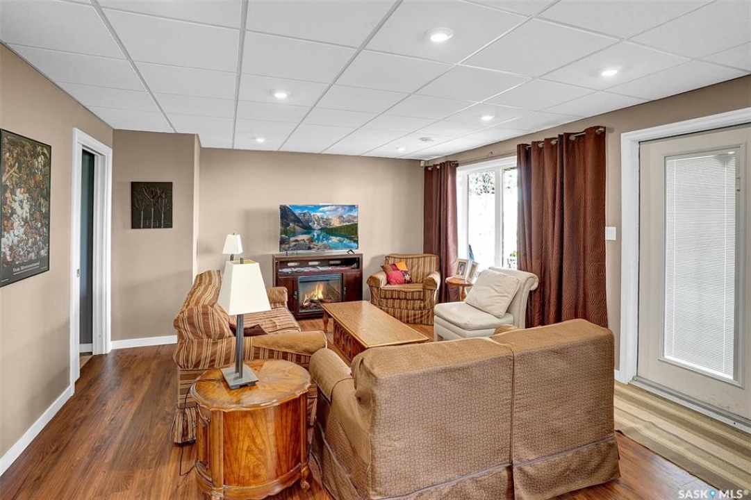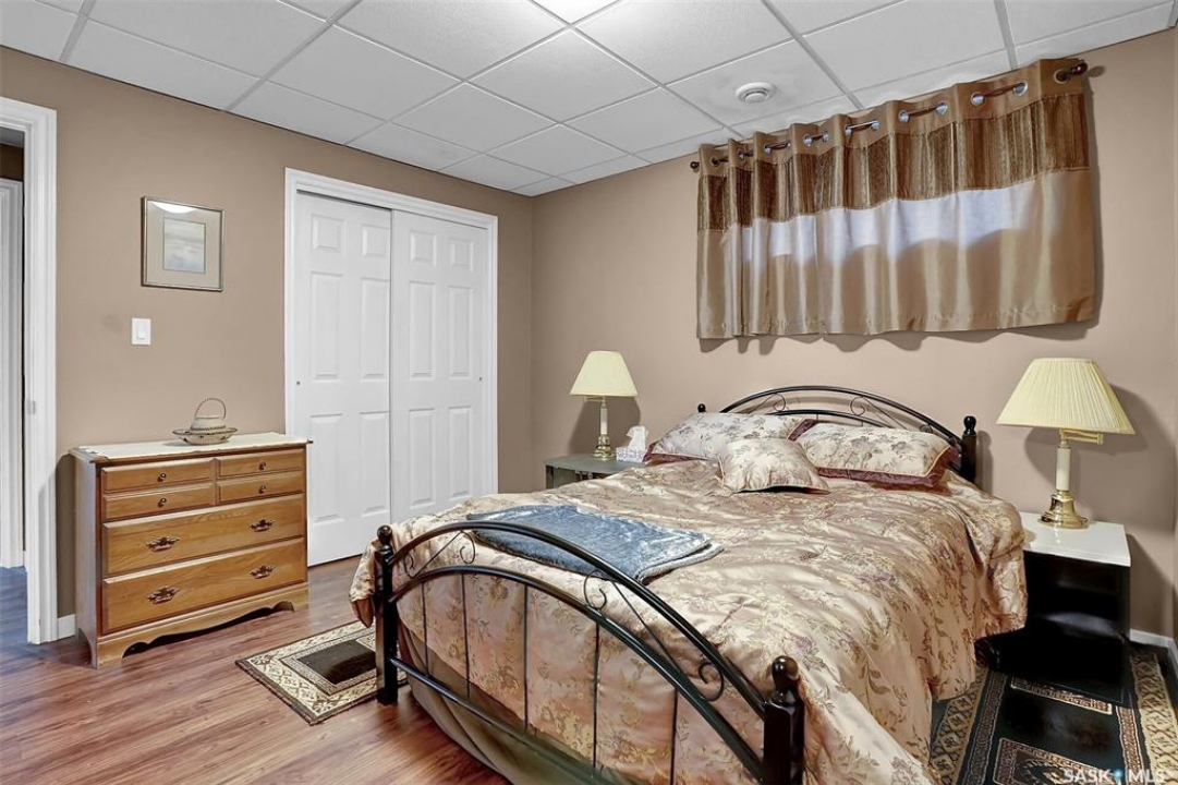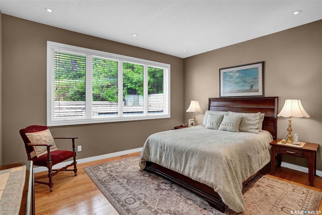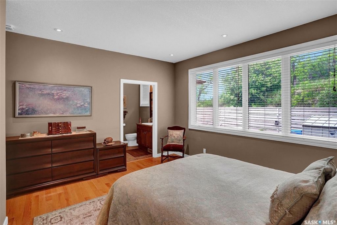 Welcome to 81 Kinsley Place at Mission Lake! WOW! This large walkout delivers incredible, unobstructed views to the lake! This custom, thoughtfully designed home offers an abundance of both luxury and practicality! The main level features 3 good size bedrooms + the primary suite that proudly includes a great 3 pc ensuite, walk in closet, and large windows. The formal dining area is open to the living room with gorgeous hardwood floors. The large kitchen is a chef's dream with nutmeg maple cabinets, large island with a quartz top, S/S appliances (Kenmore Elite freezer/fridge combo), built in pantry with rolling drawers, wine rack, tons of counter space/storage and added pot lights. There is a convenient flex room and 2 pc bath tucked away behind the kitchen. The main bath and ensuite boasts heated flooring. The large laundry room includes the washer and dryer, sink, and more storage capacity. The impressive walkout level showcases an 1800 sq ft suite with a large kitchen with crisp white cabinets, full set of appliances, 3 bedrooms, private laundry room, a full 4 pc bath, and patio doors that lead to a large, private patio space. The exterior of this property includes a retaining wall, swale, garden area, ample parking, and a super impressive covered deck that spans the entire length of the home where you could easily have 75+ people comfortably enjoying the sunrise or the sunsets! There has been many large gatherings and even a few weddings on the property! A large insulated and heated double garage with a workshop completes this property. Other important noteables - steel beam construction, original owners, central vac, central air, air exchanger, original drawings available. A true gem in the land of the living skies!