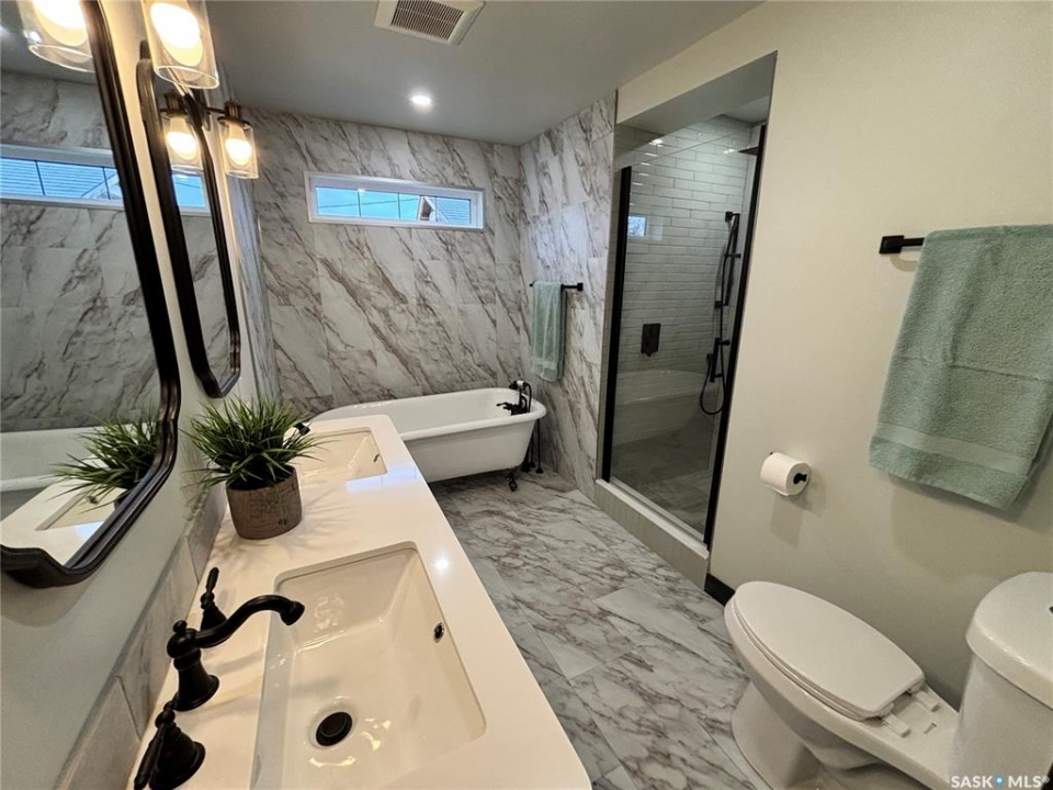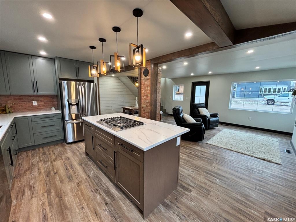 OPEN HOUSE-JAN 18 12PM-2PM!! Welcome to a truly exceptional property in the charming community of Bruno.This beautifully restored 1,956 sq.ft. 1 1/2 storey home has been completely renovated inside and out—right down to the studs—while thoughtfully preserving timeless character and local history.Main floor is the definition of modern rustic elegance.Step inside to an inviting open-concept main floor where living room,dining room,and kitchen flow seamlessly together.Design blends modern comfort with rustic charm,featuring:electric fireplace on a striking feature wall,exposed beams,shiplap details,and original brick accents,including brick sourced directly from the historic Bruno Brick Factory.Spectacular chef's kitchen with large contrasting island,gas cooktop,abundant counter space,custom cabinetry,and impressive storage.Main floor also offers a gorgeous 4-pc bath complete with free-standing soaking tub,tiled walk-in shower with rainfall shower head and double-sink vanity.There are two spacious bedrooms on this level,including a tranquil primary suite with a walk-in closet and a private 2-pc ensuite.A convenient main-floor laundry room leads to the back entrance.The second level offers additional space for everyone.Upstairs,two additional bedrooms,storage area,cozy bonus room,and stylish 3-pc bath with custom-tiled shower and rainfall shower head-perfect for kids,guests,or home office setup.The basement has seen an improvement in layout & functionality.The basement has been reconfigured and restructured for better use,including relocating the furnace and water heater to create a more open,functional space suitable for storage,hobbies,or future development.The exterior is essentially brand new as well.No detail was overlooked outdoors-new windows,siding,soffit,fascia,and shingles.Beautiful curb appeal with the charm of an older home and the durability of modern construction.Come check out all the updates this gorgeous house has received!