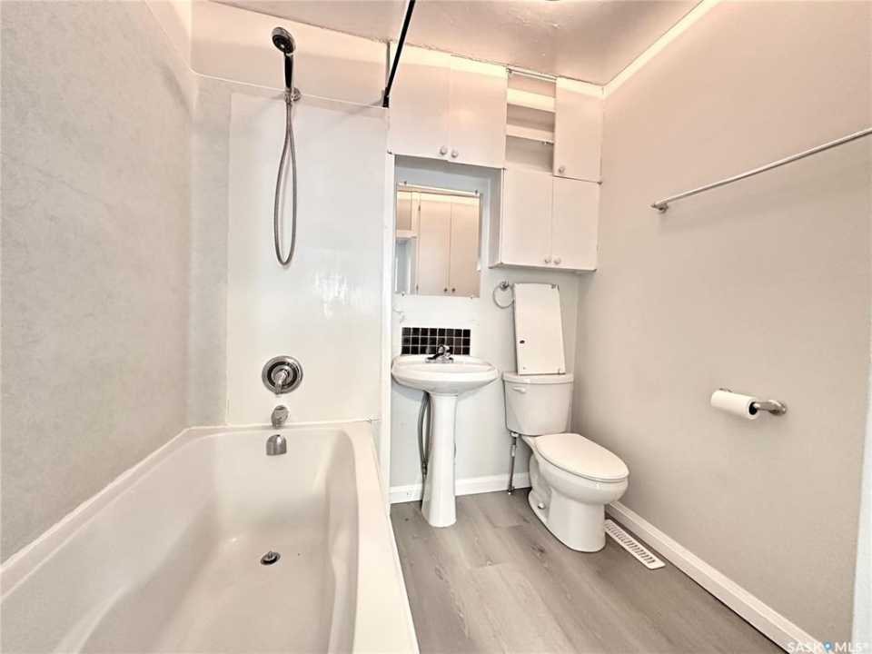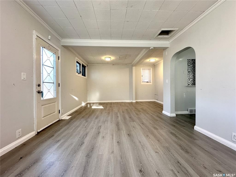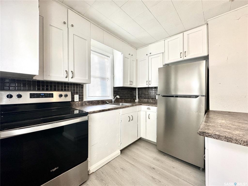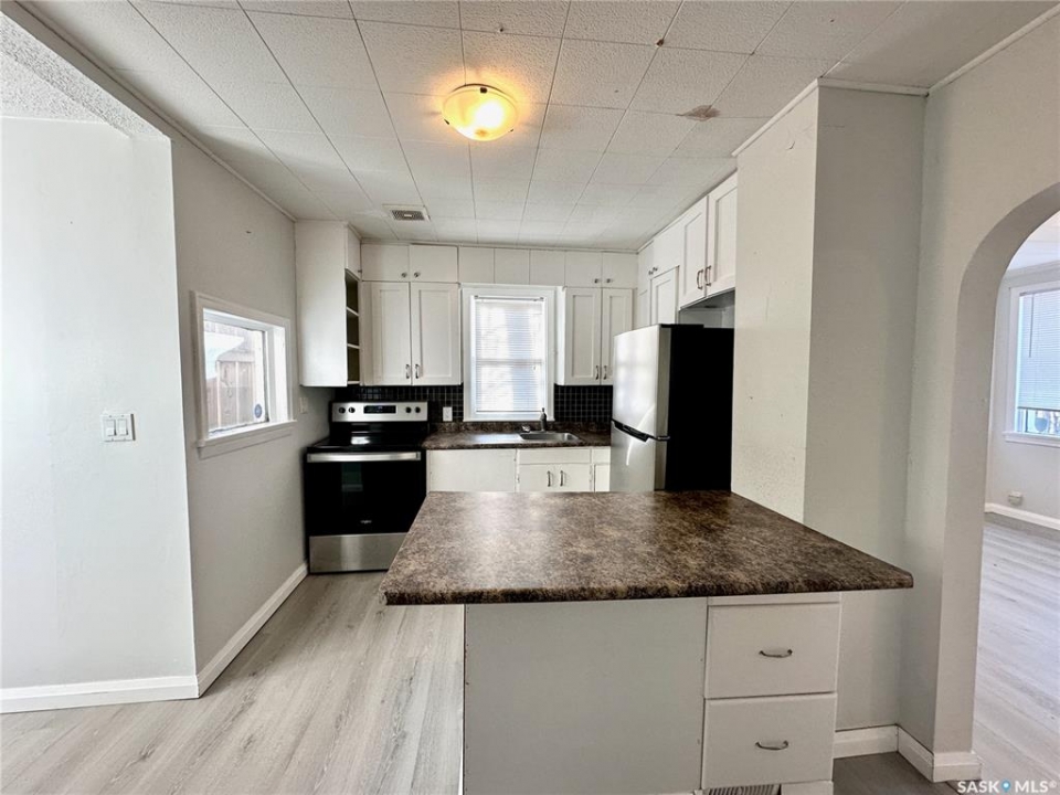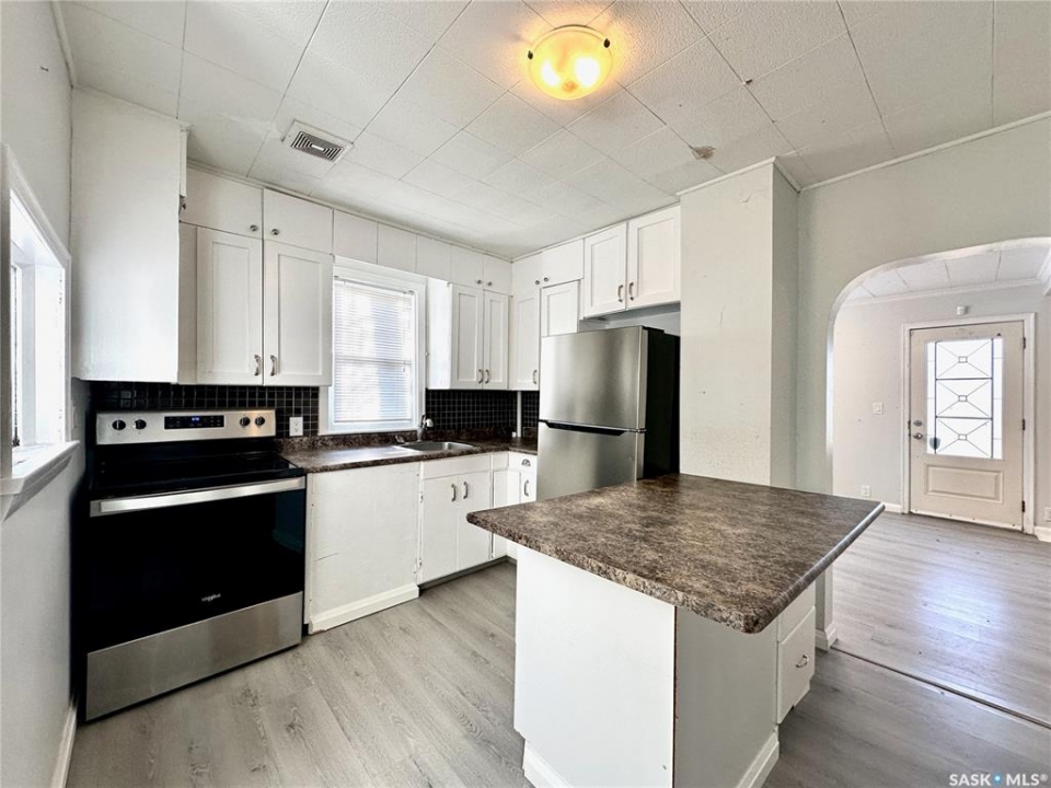 Step into this charming 1.5-storey home in the heart of Westmount, offering just under 1,000 sq. ft. of smartly designed living space in one of Saskatoon's most convenient locations. You're steps from schools, parks, and quick commuter routes, making everyday life easy and enjoyable. Inside, the home features modern updates throughout—from fresh paint and contemporary laminate flooring to an updated kitchen that connects seamlessly to the spacious living and dining areas. The main floor includes two bedrooms, including an impressive oversized rear bedroom with room to create a true retreat. Upstairs, the loft-style second-floor bedroom adds character, versatility, and extra space for guests, a home office, or a cozy hideaway. The basement offers a generous family room with two good-sized windows plus plenty of storage. It does require a remodel and some foundation repairs, but it presents an excellent opportunity for the right buyer to add value and make this home truly their own. Situated on a large lot, this property also opens the door to future redevelopment potential, whether you're dreaming of adding a garden suite, expanding the home, or exploring long-term investment opportunities. Outside, you'll appreciate the single detached garage, ample off-street parking, and a deep backyard with room to relax, garden, or build. Whether you're a first-time buyer, investor, or future developer, this Westmount property offers flexibility, possibility, and an incredible location that continues to stay in demand.