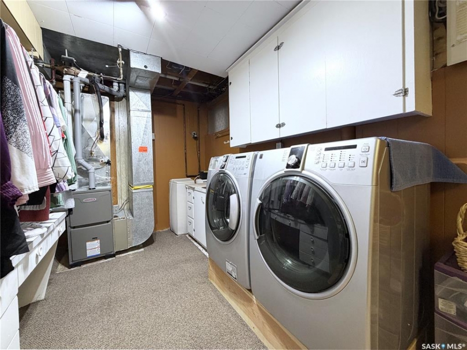 Spacious 1,236 sq. ft. bungalow on a large lot with exceptional parking and upgrades throughout! This 4-bedroom home (2 up, 2 down) features two concrete driveways, full RV parking with cement pad, a single attached heated garage, plus a 350 sq. ft. heated workshop with rear yard access. Inside, enjoy a bright living room, updated kitchen and dining area with garden doors leading to a covered deck overlooking a beautifully landscaped yard. Main floor offers two bedrooms and a fully renovated 4-piece bath, with plumbing in place for optional main-floor laundry. The developed basement includes a family room with electric fireplace, two additional bedrooms, an updated 3-piece bath, and a large laundry/utility area. Brand new Lennox furnace and air conditioner in March 2025. Motivated seller!