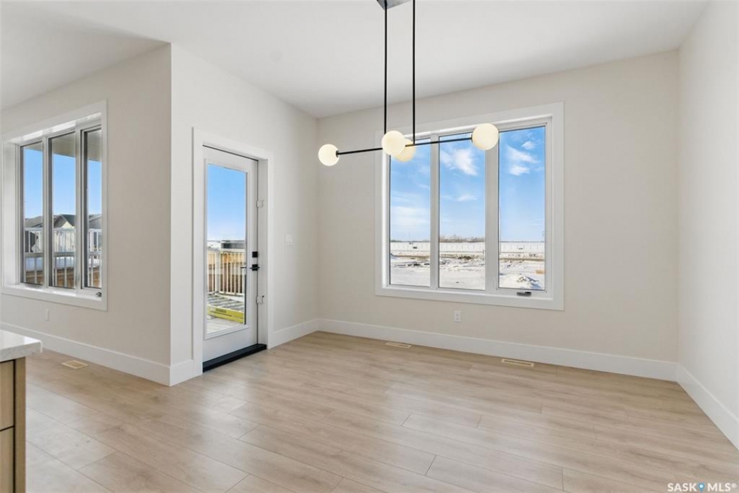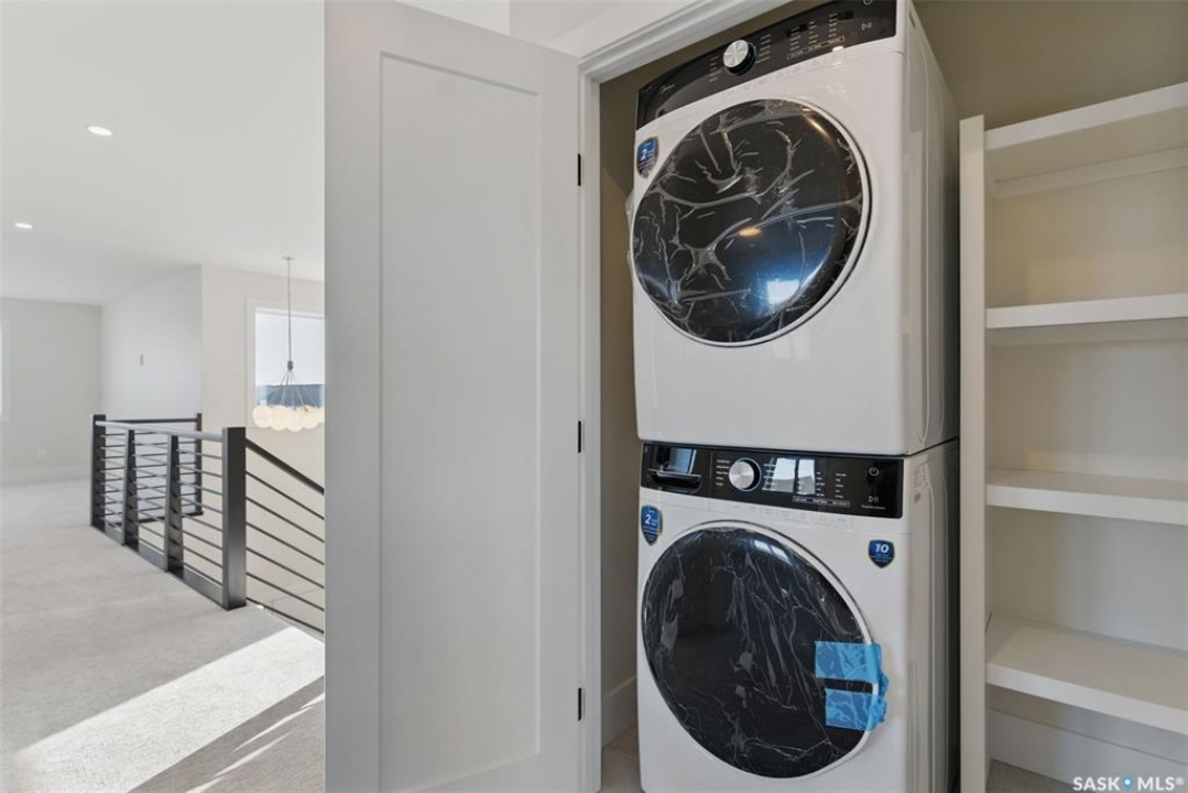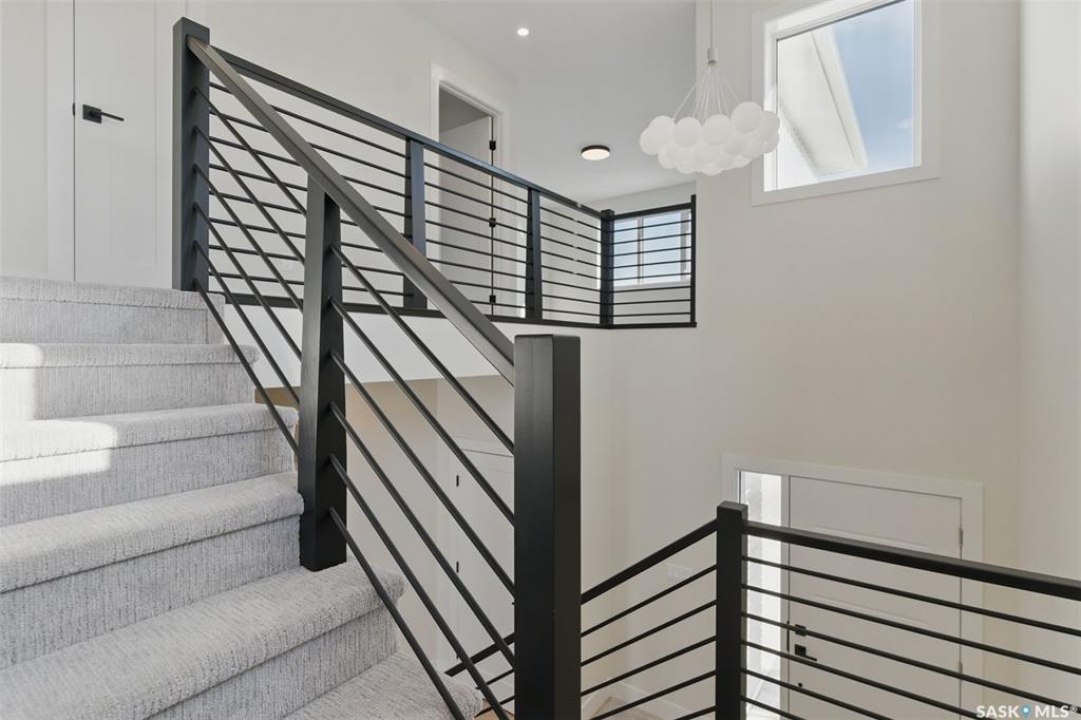 Welcome to 218 Veterans Drive! This beautiful new home is located in Warman, close to all amenities. Walking in you are greeted with plenty of natural light. In the great room you can cozy up by the fireplace on cold days. With the Open Concept this home is great for hosting! The Kitchen has plenty of counter space, under cabinet lighting to have both ambiance and ample task lighting, and a walk thru pantry that leads to the mudroom to make unloading groceries easy. Going up the staircase you can look down into the foyer over the banisters. In the primary room you have a feature wall, plenty of natural light, a 5-pc ensuite, and a walk-in closet! There is also a laundry closet located conveniently by all 3 bedrooms. Upstairs there is a 4-Pc Bathroom and a family room. Contact your Realtor today to not miss viewing this beautifully crafted home where luxury meets comfort! Under construction. Finishes may vary from listing pictures.