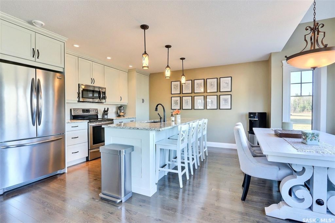 Luxurious 2 storey residence in the esteemed gated community of Laurel Green Estates in Emma Lake. This exquisite property offers 1,625 sq/ft, 5 bedrooms, 4 bathrooms, and a 24 X 26 detached garage. Upon walking in you will find a sophisticated and open-concept great room with vaulted ceilings, hardwood flooring, large windows and a natural gas fireplace with beautiful surround finished all the way to the ceiling. The sleek white kitchen is a modern masterpiece, featuring quartz countertops, ceramic backsplash, stainless steel appliances, soft-close cabinets, and a spacious island, ideal for meal preparation, casual dining or hosting for family holidays. Finishing off the main floor is the impressive primary bedroom which offers a spacious walk-in closet and 5-piece ensuite with in-floor heat. The 2nd level consists of 2 sizeable bedrooms and a full bathroom also with in-floor heat. The fully finished basement boasts a recreation room, 2 remaining bedrooms, a full bath, laundry room with ample storage and a utility room. Moving outside, you'll find the deck with a natural gas BBQ hook-up and access to the fenced area of the yard. A few notable features include central vac, air exchanger, sump pump, HE N/G furnace and on-demand hot water heater and an exclusive parking spot in a secure compound for additional storage needs. Enjoy the peace of living at the lake while enjoying the luxury and convenience this beautiful home offers, this is a must see!