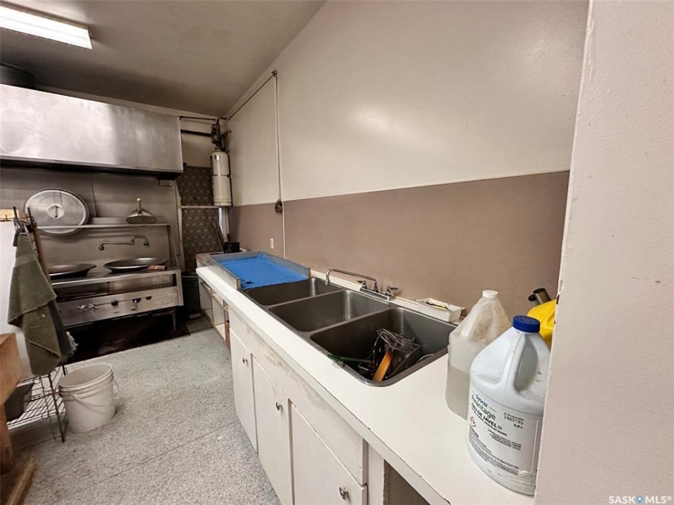 The iconic Ming's Wok is a prime opportunity for the next Main Street restaurant in the busy town of Spiritwood. This restaurant with seating for 100 comes fully equipped and ready to cook, with a cafe on one side and large dining room & beverage room on the other, both with air conditioning. The kitchen boasts a new dishwasher, three woks, grill, deep fryer and all the space you could want for prep, along with a walk-in cooler with shelving. An area with storage, freezers and laundry leads to a three-bedroom suite, featuring a living room, full bathroom and office. The side and back yard offer a garden space with fenced deck, two storage sheds and room to park two vehicles. Call your agent to book a showing.