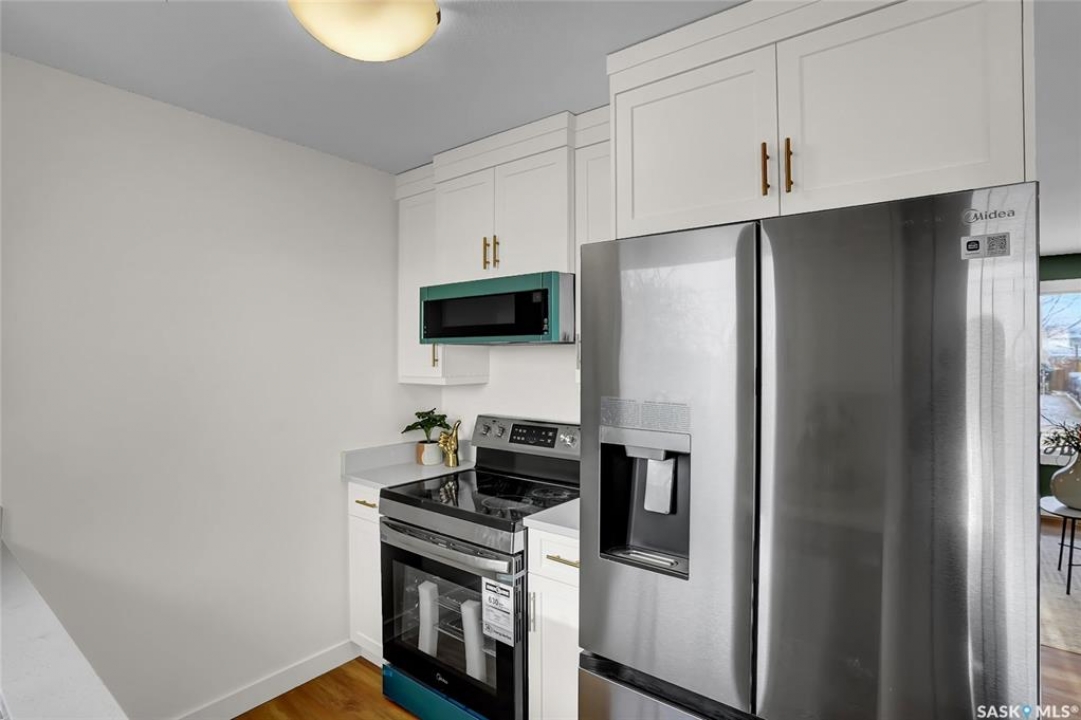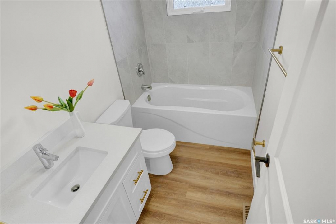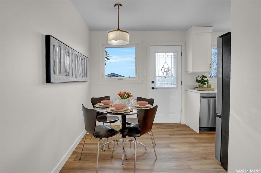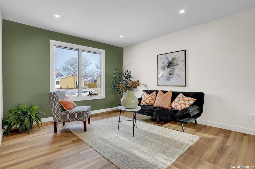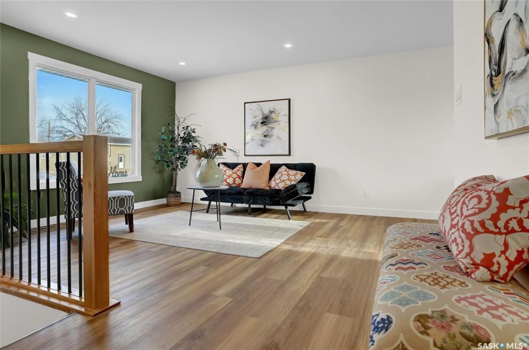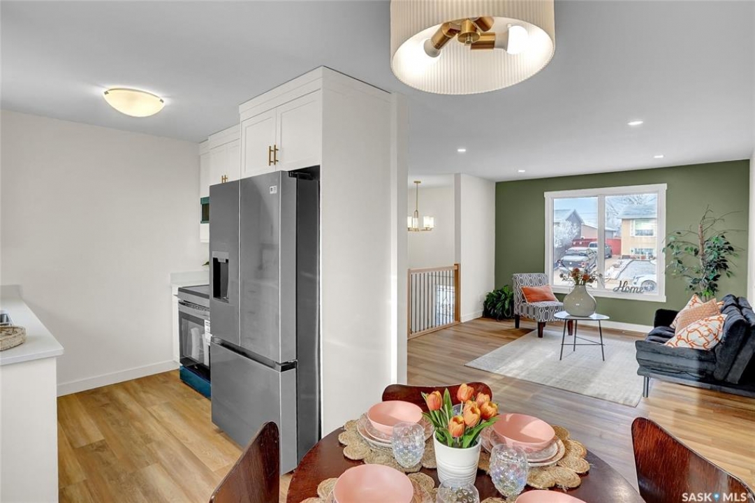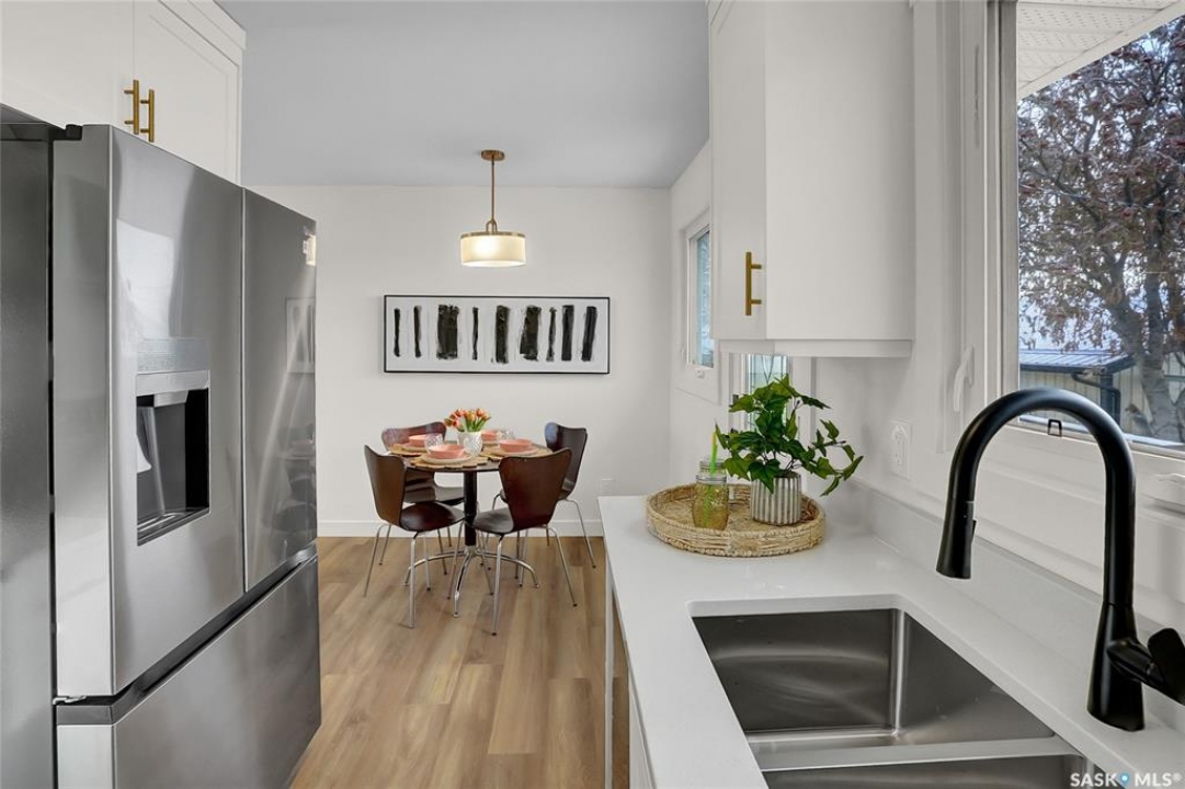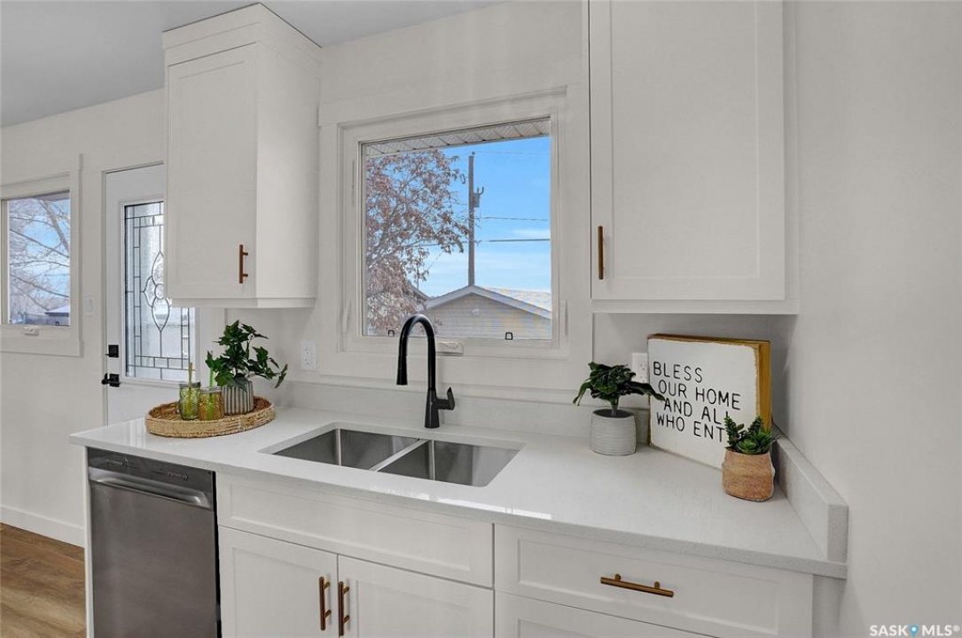 Discover the charm and modern convenience of this affordable, newly renovated home with no backyard neighbours. The property has been tastefully renovated throughout the interior, making it both stylish and functional. Also new concrete driveway and front sidewalk. This is the cutest home, welcoming foyer, seamlessly flowing into the Living, Dining and Kitchen with new stair banister. Updated windows only enhance the luxury vinyl floor that flows throughout the main floor filling the home with natural light. The kitchen enjoys quartz counters, new stainless steel kitchen appliances including fridge, stove, built in dishwasher and microwave hood fan. You will love the gold hardware and new lighting fixtures. The main floor hosts 2 bedrooms and this floor is complete with an updated 4pc. Bath with soaker tub with tile surround. The lower level is finished boasting a family room, with game area or a perfect spot for an office/craft or workout space. This floor is complete with a great sized 3rd bedroom, 3 pc. bath with full tub surround w/seat, laundry & storage in the utility room. This family home boasts s high efficiency furnace, water heater, new electrical panel and has a sump pump. The south facing yard is fully fenced with a wonderful deck accessible from the dining area, it is perfect for outdoor relaxation, entertaining and enjoying the sun. The landscaping is an open canvas to create your own oasis and has room to create a garden and the kids to play. The Bonus is the Dbl. Det. Garage, insulated, with alley access which is in addition to the front drive. This home represents an excellent opportunity to own a like-new property in a beautiful family-friendly area, steps to walking paths, and recreational parks. CLICK ON THE MULTI MEDIA LINK FOR A FULL VISUAL TOUR, and call today and let make your next move to live more beautifully. (Note bedrooms and lower level family room are virtually staged).