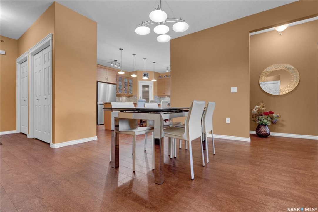 Experience refined condo living in this executive-style 1,475 sq. ft. residence, featuring two bedrooms plus a den and tucked away in a quiet, secluded location on the second floor with serene views of the park. A spacious front foyer welcomes you into the home, showcasing warm cork flooring and an impressive open-concept layout enhanced by nine-foot ceilings. The bright living room offers a garden door with a Phantom screen leading to a large balcony complete with a natural gas BBQ hookup—perfect for relaxing or entertaining while enjoying the park setting. Adjacent is a generous dining area that flows seamlessly into the dream kitchen. This beautifully appointed space features upgraded horizontal-grain cabinetry, granite countertops, a large centre island, glass-panel upper cabinet doors, convenient pull-out drawers, upgraded stainless steel appliances, and a walk-in pantry. The park-facing primary bedroom is a true retreat, complete with a walk-in closet and a spacious 3/4 ensuite featuring built-in cabinetry and an oversized shower. A generous second bedroom is conveniently located near the full main bathroom. A versatile den or office, along with a dedicated laundry room and separate storage room, adds to the home's functionality. Additional highlights include two heated underground parking stalls and a secure storage locker. Residents enjoy a host of exceptional building amenities such as a guest suite, amenities room, exercise area, visitor parking, main-floor lounge, expansive outdoor patio, workshop, and beautifully maintained grounds. This exceptional property offers comfort, privacy, and convenience—truly a wonderful place to call home!