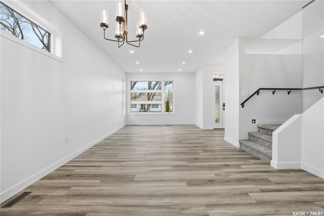No convenience or detail spared in this superbly crafted 1,723 sq/ft, 4 bed, 4 bath home, built on piles and designed with comfort and longevity in mind. Welcome to 3130 Garnet Street, located in the sought-after mature neighborhood of Regina Lakeview. The property is conveniently situated near Argyle Elementary, École St. Pius X Elementary, and Martin Leboldus High School. The bright and open floor plan is filled with natural light, creating an inviting atmosphere perfect for a growing family and entertaining. The ultra-modern kitchen showcases a large centre island, ample storage and preparation space, soft-close drawers, stylish tile backsplash, and a walk-in serving pantry. Appliances include a side-by-side fridge/freezer, professional six-burner gas range and hood with electric oven, and a built-in dishwasher. An elegant glass-insert staircase leads to the upper level. The primary bedroom boasts a walk-in closet and a spa-like ensuite with double sinks, soaker tub, and a beautiful tiled shower. Two additional spacious bedrooms and a large four-piece bathroom with a vanity and tiled tub surround complete the upper level. Lighted stairways up and down, the fully finished lower level includes a large recreation room, bedroom, 3-piece bath, and a functional laundry room with built-in storage. More storage is available under the stairs, along with a utility room. This home has great curb appeal with a maintenance-free exterior. The landscaped backyard features a vinyl deck with aluminum railing, vinyl fencing, and a 20'x22' detached double garage. Value-added features include triple-pane All-Weather (6100 Series) windows, central A/C, high-end appliances, complete smart home system, anti-fog mirrors, 100-amp electrical panel, dual backwater valves, heat recovery unit, and a dual-stage high-efficiency furnace and much more. This beautiful home in a fantastic location is just waiting for you to call it yours. Contact your agent to schedule a showing today.