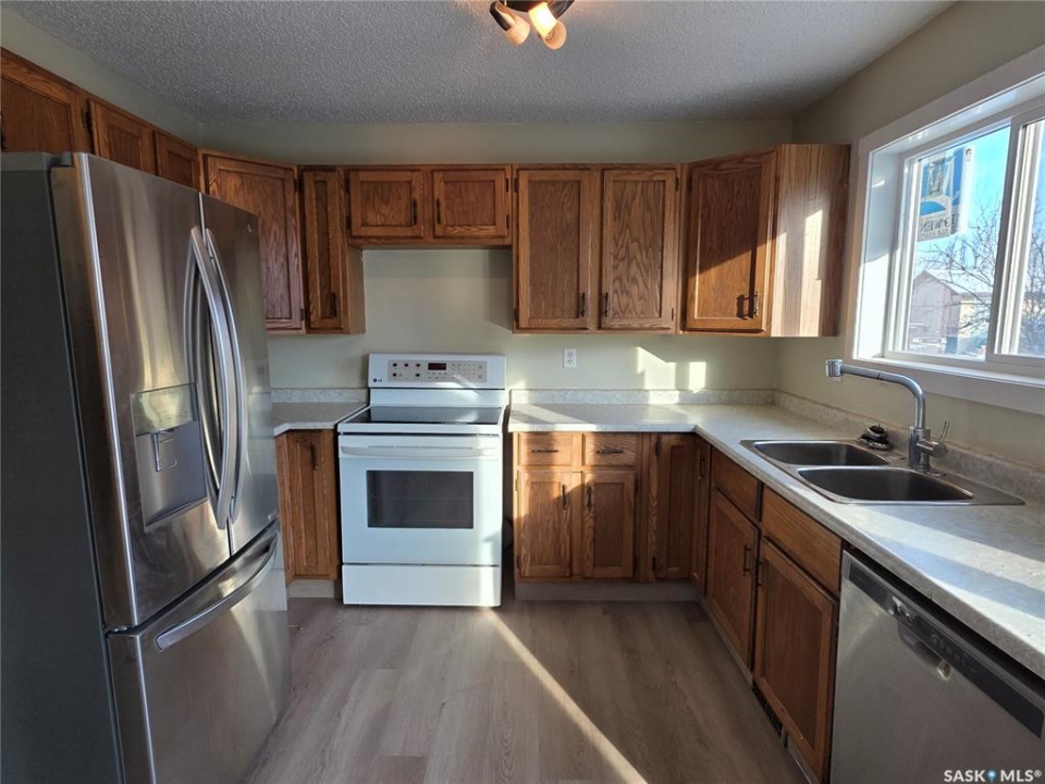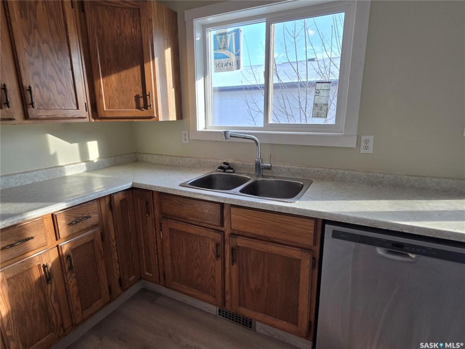 NEW LOOK! NEW LIFE! Welcome to the fresh & polished version of your next home. Reimagined with updates buyers will love, this 2 bedroom, 1 bathroom bi-level has undergone the perfect glow-up. Enjoy brand-new flooring & baseboards throughout the main level, a new front storm door, & fresh paint touchups that make the home feel bright, crisp, & move-in ready. Step into a welcoming front-facing living room filled with natural light; warm, open, & ready for cozy days or lively evenings. The eat-in kitchen flows seamlessly off the living space & comes equipped with fridge, stove, & built-in dishwasher, making meal prep and daily life convenient & comfortable. Just off the dining area, patio doors lead you to a freshly painted two-tier deck & gate, extending your living space outdoors. Picture BBQ nights, morning coffees, & watching kids or pets play; plus cherry & plum trees right in your backyard for sweet summer picking. Two bedrooms & a full bathroom complete the main floor. The basement is framed & waiting for your vision; future rec room, den/office, bathroom, laundry, &/or storage - giving you opportunity to add value over time. Practical, big-ticket updates add peace of mind & long-term value, including newer shingles, updated main floor windows, & central A/C for summer comfort. Located in family-friendly Rochdale Park, you're steps from NW Leisure Centre, Doug Wickenheiser Arena, parks, shopping, & convenient north-end amenities. A front gravel driveway offers plenty of off-street parking.