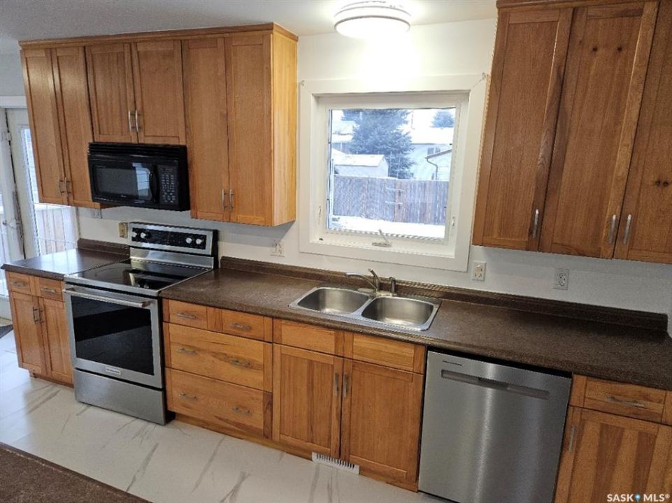 Welcome to this approximate 1412 square foot bungalow located in a quiet neighborhood in Humboldt, Saskatchewan. Built in 1980 this home offers a functional main floor layout, the ample sized living room has an abundance of natural light, the kitchen has a large island, a dedicated pantry as well as an generous �amount of cabinets and counter space. �The dining room features a wood burning fireplace as well as access to the deck and back yard. �Completing the main floor is the primary bedroom with a 2 piece ensuite, 2 additional generous sized bedrooms as well as a 4 piece bathroom. �The basement offers a large family room/recreation/games room space as well as a den/office area, an additional bedroom a 3 piece bathroom and a large laundry/utility/storage room. �Recent renos include much of the flooring, lighting, shingles, soffit, fascia, A/C as well as most appliances. �The backyard consists of a large grassed area, a shed and is fully fenced as well as an approximate 16 x 24 detached garage. �Call your agent to arrange a showing today. �All measurements to be verified by the Buyers.